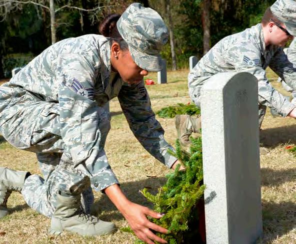 SeniorAirmanSierraEllis,abase recordsmanagerwith 6thCommunicationsSquadron,placesawreathon a gravesiteatFloridaNationalCemeteryinBushnell,Fla., Dec.17,2016. Wreathsareplacedongravesitesacross Americatohonorfallenservice members.