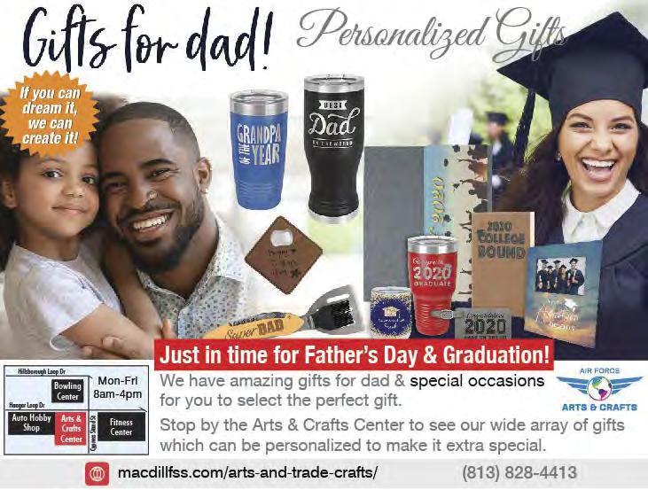 Showoffyoursummervibesand winbig!EnterOutdoorRecreation’s (ODR)SummerExpophotocontestby sharingyourMemorialDay weekend adventures. Submitaphotooffamilyorfriends, tag@MacDillFSSand@ MacDillAirForceOutdoorRecAndMarinawith#showusyourstarttosummer on Facebook,andyoucouldwinafree cabanaattheODRSummerExpoon June1—a$300value!Don’tmissout! Visitmacdillfss.com/summerexpo/for moreinformation.