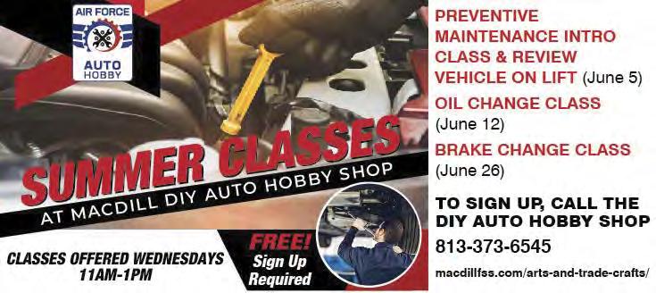Diveintoadayofsun-soakedexcitementattheSummerODRExpoon June1,atMacDillMarinaandbeach from10a.m.–3 p.m.Enjoyfreepaddle boarding, kayaking, tubingrides, and indulgeinaBBQbuffetwithsweet treats(availableforpurchase).Groove toliveDJbeats, joinahotdogeating competition,limbo, anduncovertreasuresinafossildig. Withprizesand gamesforeveryone, it’sboundtobe a dayofunforgettablefun. Formoredetails, macdillfss.com/summerexpo/.