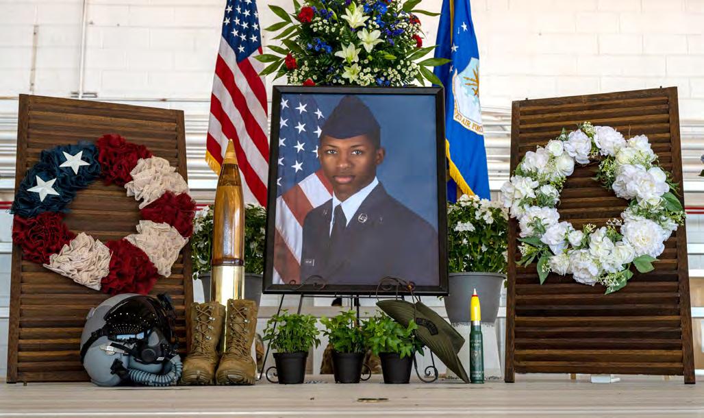 Hundredsoffriends,familyandteammates gatherforSeniorAirmanRogerFortson’sfuneralserviceatHurlburtField,Florida,May20,2024.SeniorAirmanFortsonwas23yearsoldwhenhewas shotandkilledinanOkaloosaCountySheriff’sDepartmentdeputy-involvedshootingonMay3,at hisoff-baseapartment.Hewasaspecialmissionsaviatorwiththe73rdand4thSpecialOperations Squadrons.Thecircumstancesarecurrentlyunderinvestigationbythe FloridaDepartmentofLaw Enforcement.