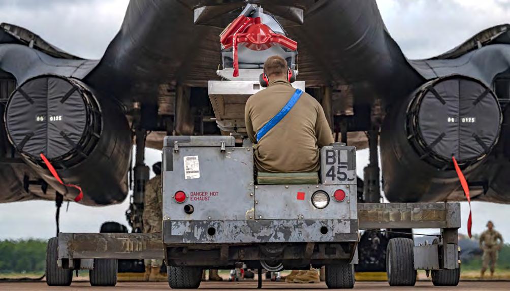 PhotobySeniorAirmanJosiahBrown SeniorAirman JoeHance,9thExpeditionary BombSquadronweaponsload crewmember,drives the AGM-158intotheaftweaponsbayatRAF,UnitedKingdom,June6.Strategicbomber missions enhance