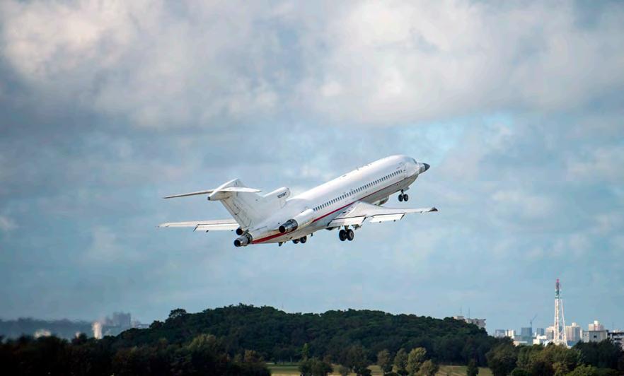 TheRaytheonMulti-Program TestbedtakesoffduringexerciseNorthernEdge23-2at KadenaAir Base,Japan, July 12.TheRMTusesacombinationofradarandelectronic intelligencesensorstocaptureinformationonsimulatedthreatswhichisthenpassed onto alliedplayersforenhancedcommandandcontrol.