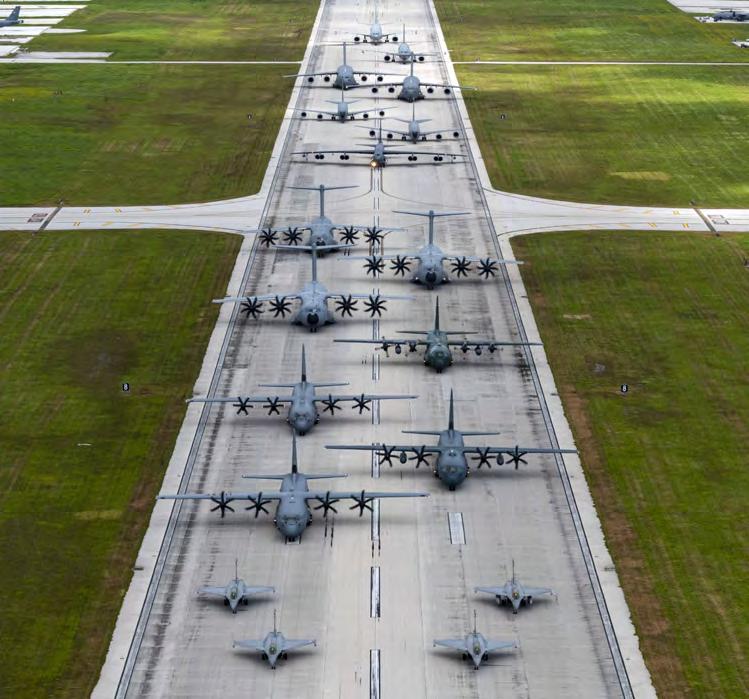 landand refuel is farmore limited. Long-duration endurance sorties, such asthe record-setting20+ hourUKA400Mnon-stopflightfromRAFBrize Norton, U.K., toAndersen Air ForceBase, Guam,demonstrated the ability tonotonlycover challenging distances, butalsotheflexibility ofaerialrefuelingtoremainairborneforprolonged periods, creatingmore optionsfor aircommandersorchestrating complexanddynamicairmovementsacross the theater.