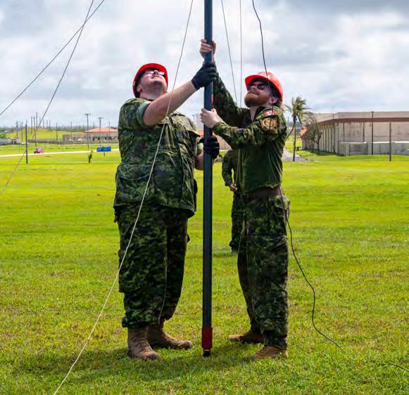 RoyalCanadianAirForceMasterCpl.Montgomery Burke,right,andRCAFMCplCodyReese,aerospace telecommunicationsandinformationsystemstechnicians assignedtothe8th CanadianCommunicationsand Control Squadron, workswith theU.S.JointCommunications SupportElementtosetupahighfrequencyradio duringexercise MobilityGuardian23,July16atAndersen AirForceBase,Guam.