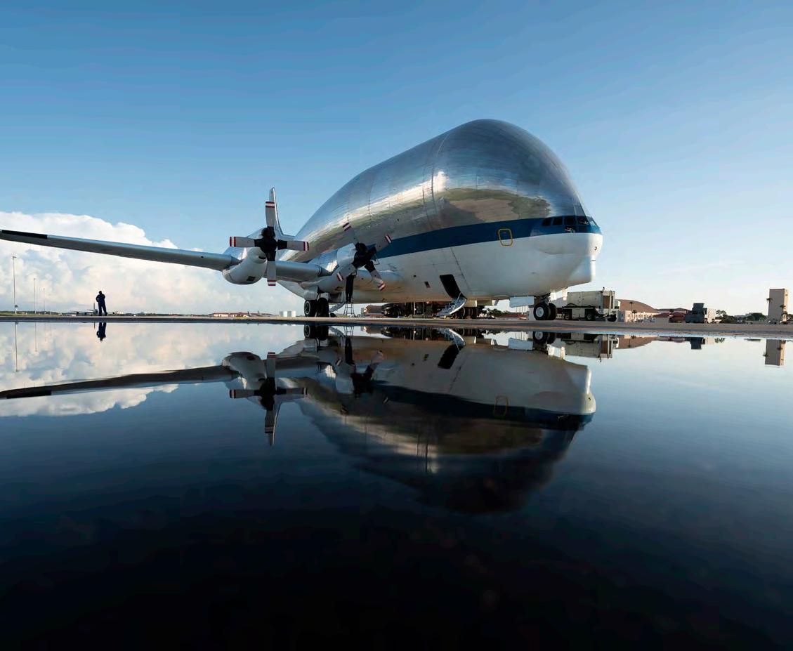 ANASAB-377-SGTSuperGuppy Turbinefrom NASA’s JohnsonSpaceCenter, TexasisshownontheflightlineatMacDillAirForceBaseAug.1.TheSuperGuppy TurbinewasintransittoNASA’s KennedySpaceCenter,Florida,andwas carryingtheOrionHeatShield.The16.5-foot-wideheatshieldisoneofthemostimportantsystemsontheArtemis IIOrionspacecraftandwillhelpensureasafe return ofastronautsonboard.NASA’s Artemisprogramaimsto return humansto themoonforlong-termexploration and future missions.