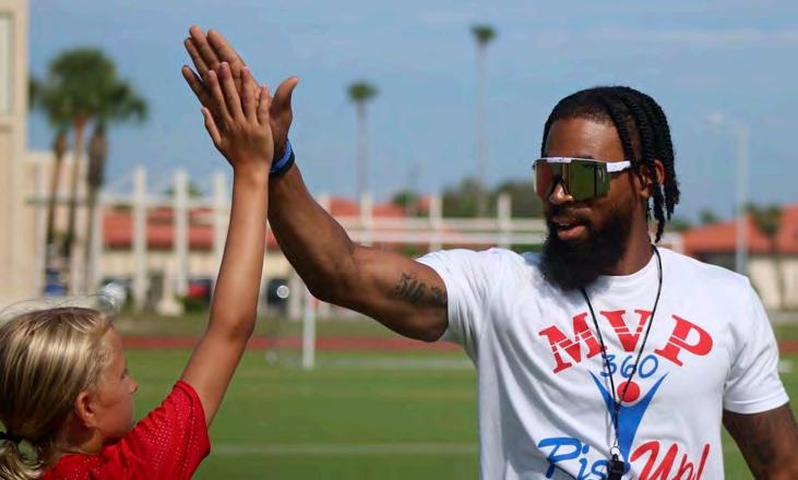 MVP 360Coach TravisProctorhigh-fivesacampparticipant at ayouth footballcampin Florida.Thenewcamps, funded by theAirForce ServicesCenter’schildandyouthprograms, are atfourinstallationsfor2023 andare expected to grow significantly to20-25Department oftheAir Forcelocationsforsummer 2024,including someoverseas.