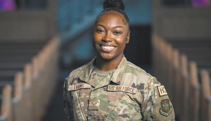 U.S.AirForceSeniorAirmanZoriaEvans,6thAirRefuelingWing religiousaffairsapprentice,posesforaportraitinthe6thARWchapelAug. 10atMacDillAirForceBase.Evanswas recognizedbyChiefMaster Sgt.oftheAirForceJoAnneS.Bassforhereffortsintrainingoverfive hundredAirmenon religiousaccommodationsatMacDill AFB. Asa religiousaffairsAirman,Evansacceleratesspiritual readinessand resiliencyforallAirman,GuardiansandtheirfamiliesatMacDillAFBthrough religiousaccommodation,spiritualfitness,andleadershipadvisement.