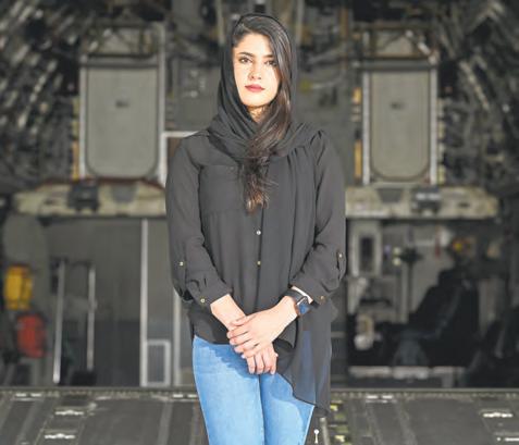 PhotobySeniorAirmanStephaniBarge Zarafshan“Zaro”Mirzaie,anAfghanevacuee, revisitsthesameC-17Globemaster III thatcarriedhertothe U.S., reflectingon theone-yearanniversaryofOperationAllies RefugeatDoverAirForceBase,Del.,Aug.8.