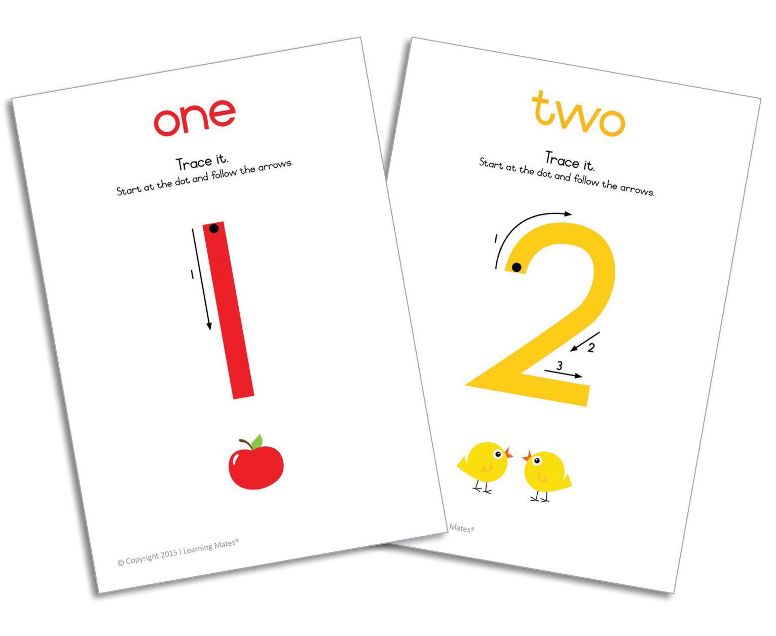 A5-sized cards for tracing numbers 0–10 with start dots and arrows. Supports fine motor skills and number recognition. Durable and wipeable.