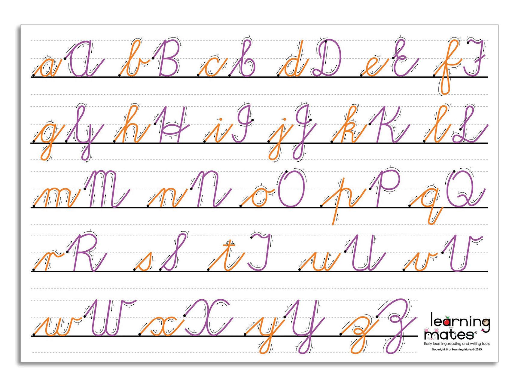 A1-sized chart showing cursive letter formation for classroom reference. Clear visual cues support consistent handwriting instruction.