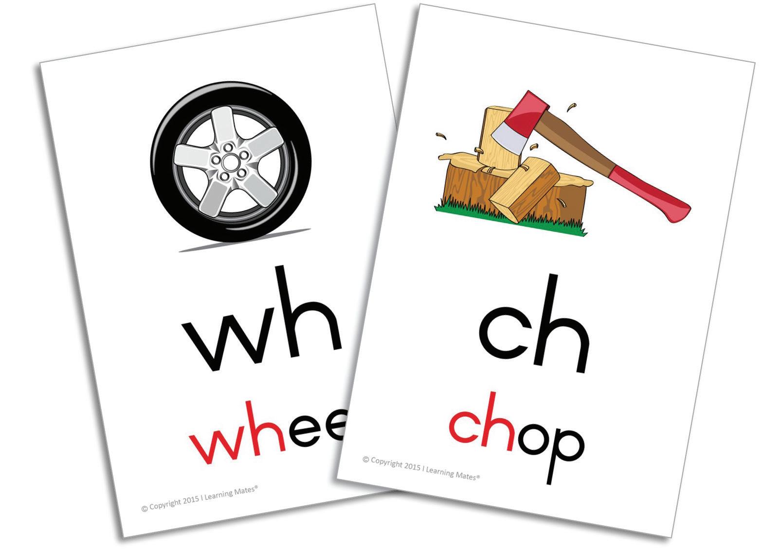 A5-sized cards teaching complex consonant combinations. Each card introduces a new sound with clear visuals.