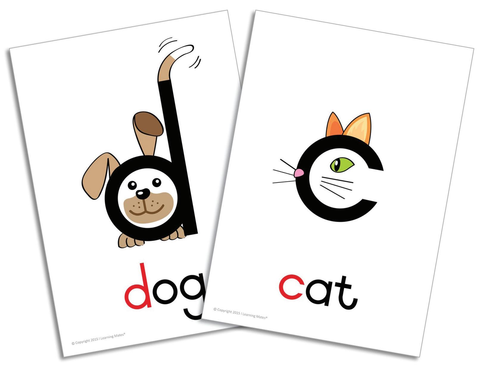 These A4 cards show letters with separate visual cues in a classic format. Ideal for structured phonics instruction and classroom display.