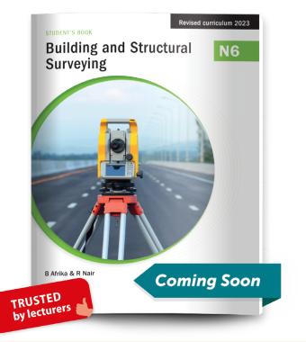 More new titles of our TVET First textbooks are coming out:, the Building and Structural Surveying N6 is coming soon.