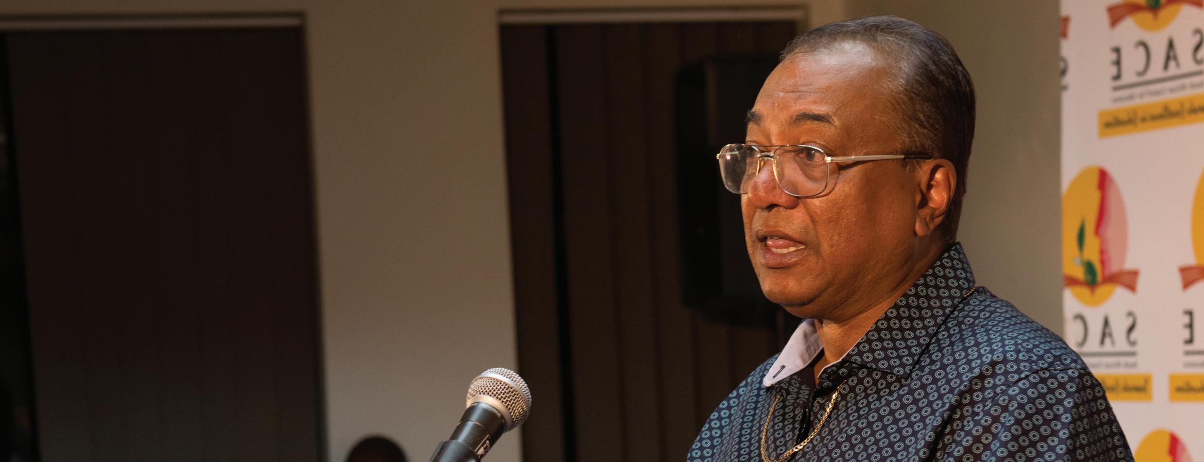 SACE CEO Mr Brijraj welcomes the guests during the World Teacher’s Day gala dinner held in Centurion