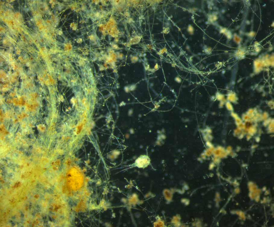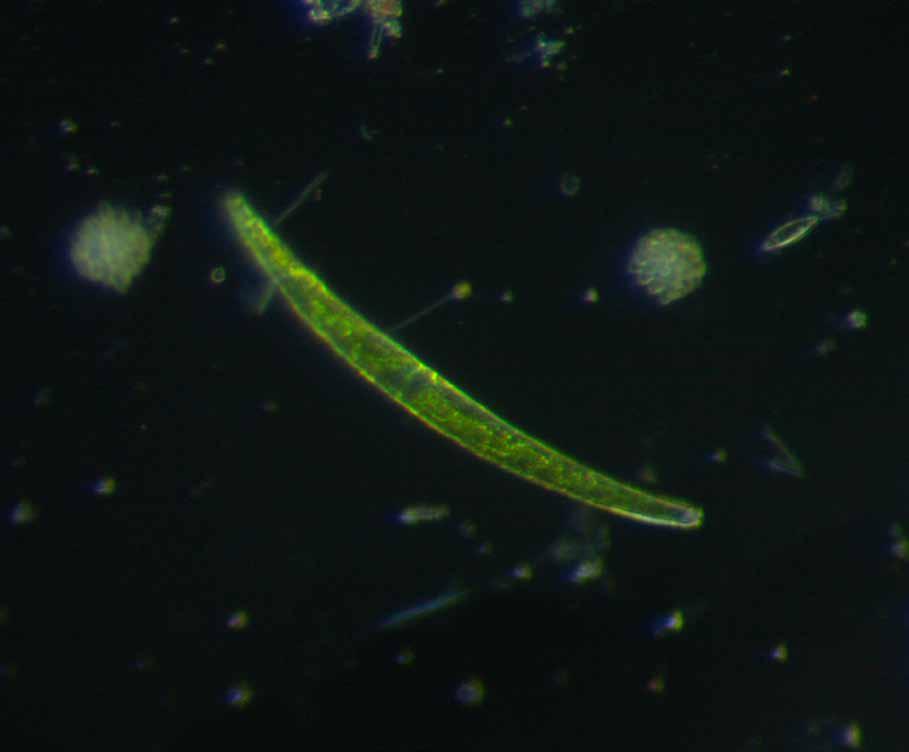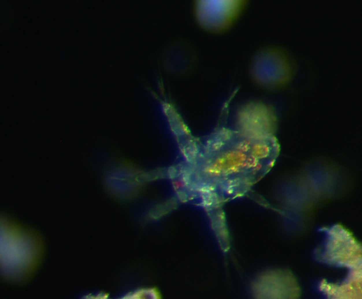 Los esencial es invisible a los ojos. El microcosmos es el reino de los más pequeños, tan pequeños que a veces no podemos verlos o percibirlos con nuestros sentidos, pero están ahí, en cada rincón de nuestro planeta; virus, bacterias, gérmenes, protozoos, invertebrados y hongos microscópicos. Ellos forman la base de los ecosistemas, una red invisible que controla los flujos de materia y energía permitiendo que la vida se expanda y evolucione. En el nivel más bajo, están los virus, pequeños fragmentos de ADN encerrados en una capsula proteica que necesitan de una célula viva para poder replicarse. Esta característica implica que sean capaces de limpiar y transferir genes entre los genomas de las células huéspedes y así acelerar su evolución. También están los productores; bacterias, microalgas y diatomeas que utilizan la energía solar para sintetizar moléculas orgánicas a partir de los gases y minerales presentes en el agua y la atmosfera, liberando a su vez grandes cantidades de oxígeno indispensable para el metabolismo de las formas de vida multicelulares y de gran tamaño, además de ayudar a mantener la capa de ozono, que filtra y disminuye la radiación ultravioleta, letal para la vida. También tenemos a los consumidores; microorganismos que se alimentan de las bacterias, microalgas y diatomeas. Está conformado principalmente por pequeños protozoos e invertebrados que deambulan hambrientos, la mayoría con órganos sensoriales y estructuras que los ayudan a buscar y capturar su alimento. Su función principal es canalizar la materia y la energía hacia los demás reinos. Y también están los descomponedores; principalmente bacterias y hongos microscópicos unicelulares que degradan la materia orgánica en descomposición. Ellos liberan los nutrientes y minerales atrapados en los cuerpos de organismos muertos para que sean reutilizados. Todos estos microorganismos interactúan entre sí, poniendo en marcha un complejo mecanismo que conecta los componentes vivos y no vivos de la tierra, transformando sustancias inorgánicas en orgánicas y viceversa, un conjunto de ciclos biogeoquímicos que mantienen desde el principio de la vida en nuestro planeta.