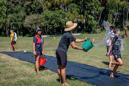 ceremony for the Captains. The camps were postponed to occur once restrictions were lifted. Grandparents Day became a series of online messages spread over the world. ZACH MACH and carnivals had to be modified and were mostly restricted to participants, with observers doing so virtually. With each trial came an adaptation, a modification, a way of preserving the spirit of the event while obeying the restrictions. It was a restriction, and we made it a meaningful adaptation.