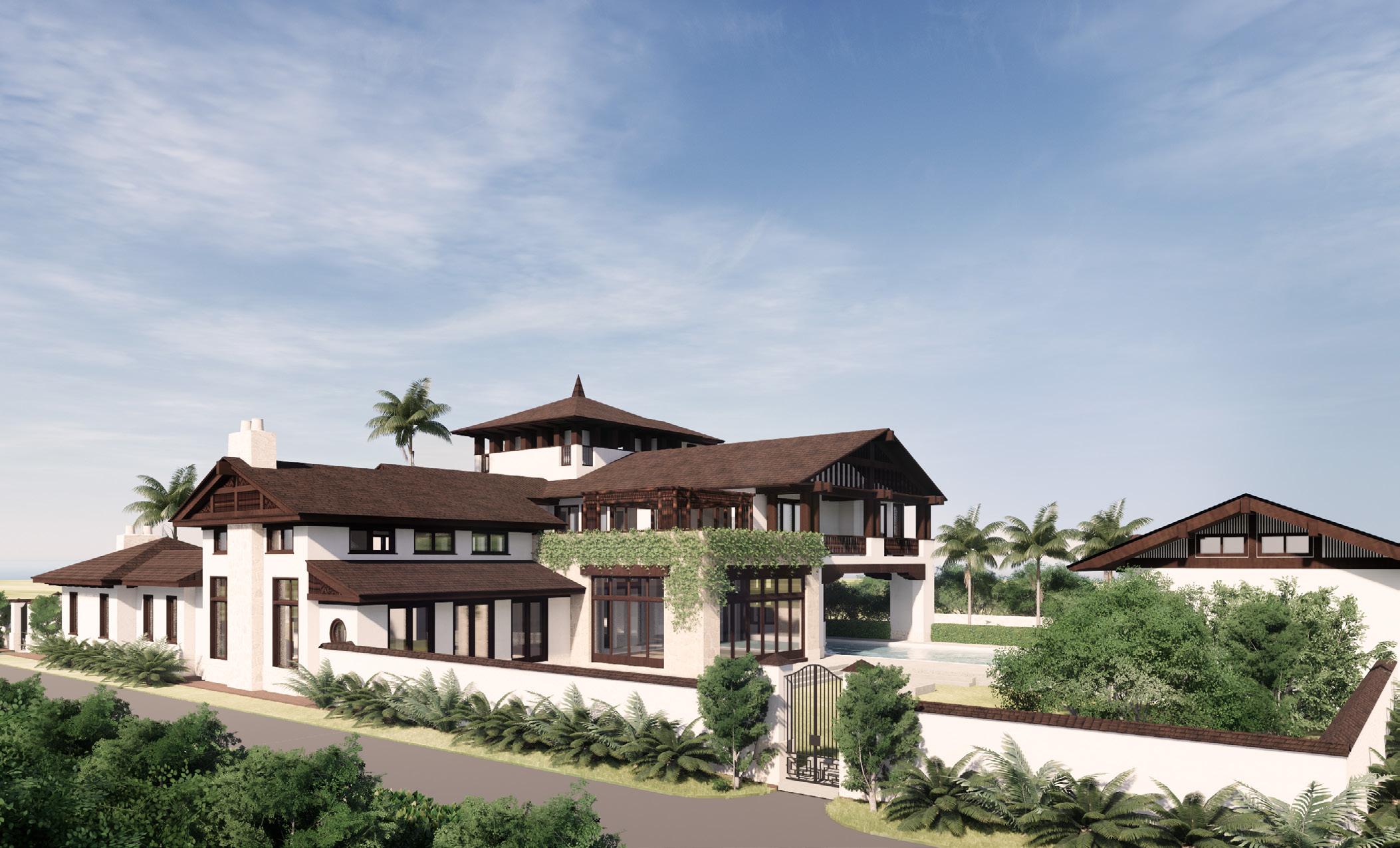 “The floor plan is formal and processional. The grand apsidal Entry Loggia leads to clearly delineated axially arranged entertaining spaces and inner courtyards to give a sense of interconnectedness.”