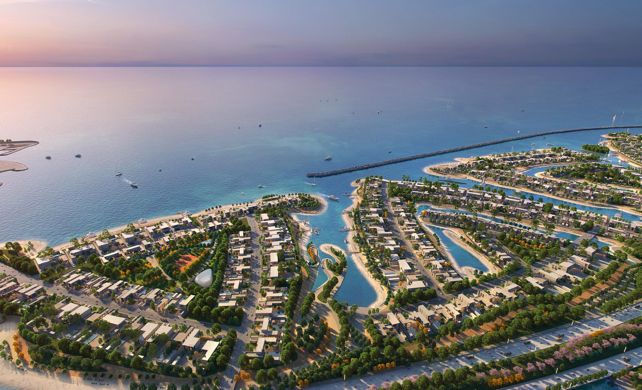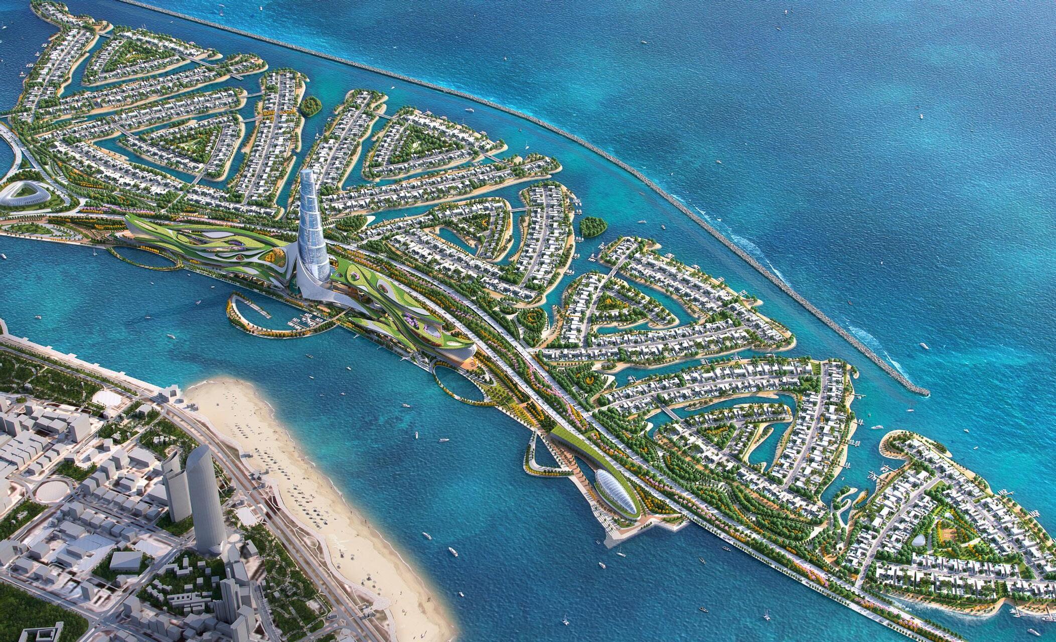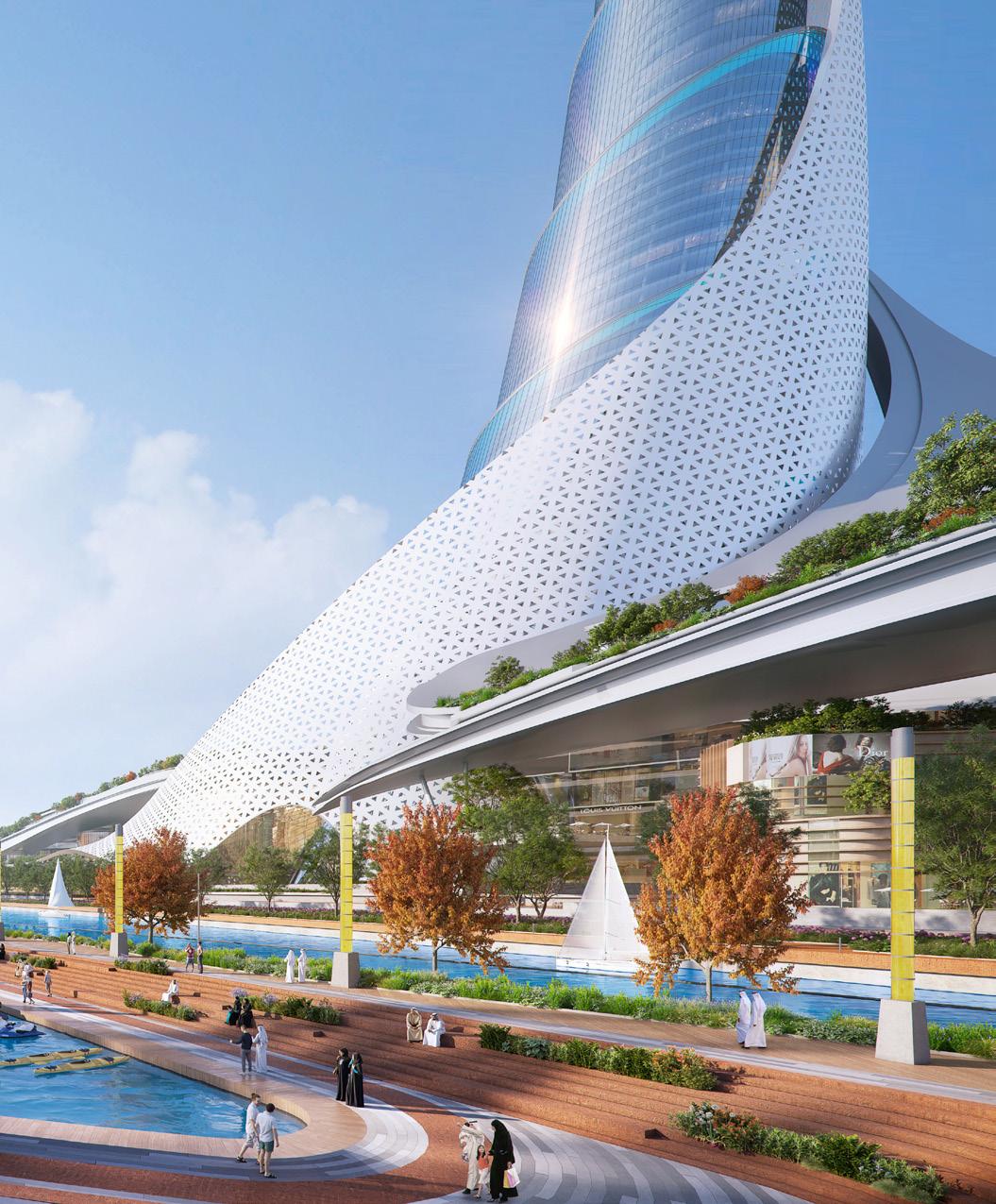 Between downtown Abu Dhabi and the breakwater, the transformation of Al Lulu Island into an innovative new hub includes a 21-hectare Commercial Zone and a 189-hectare Residential Master Plan. The island’s remaining 210 hectares are reserved for roadways, waterways, and extensive parkways. The defining feature of the Commercial Zone and the island is a 400-meter Mixed-Use Tower that completes the axial view from Abu Dhabi’s main avenue. The Tower is evocative of an ancient, tiered minaret that is partially shrouded by a textured veil and infused with light to appear like a lighthouse on the horizon. The Residential Master Plan is divided into a chain of 7 islands, each one loosely representing the 7 states of the UAE.