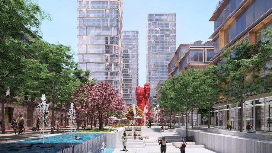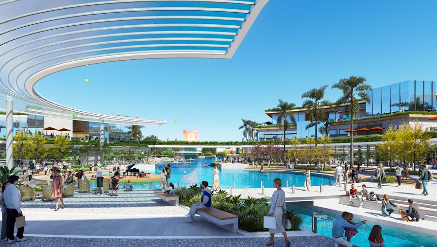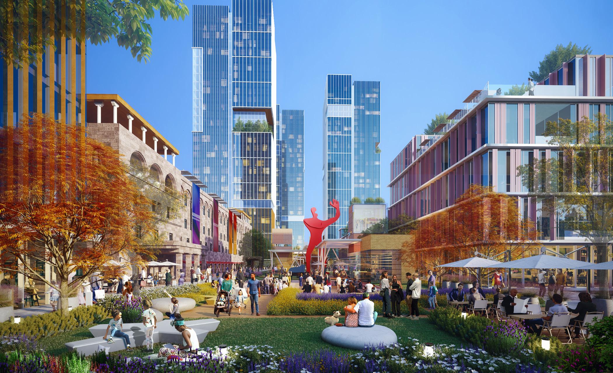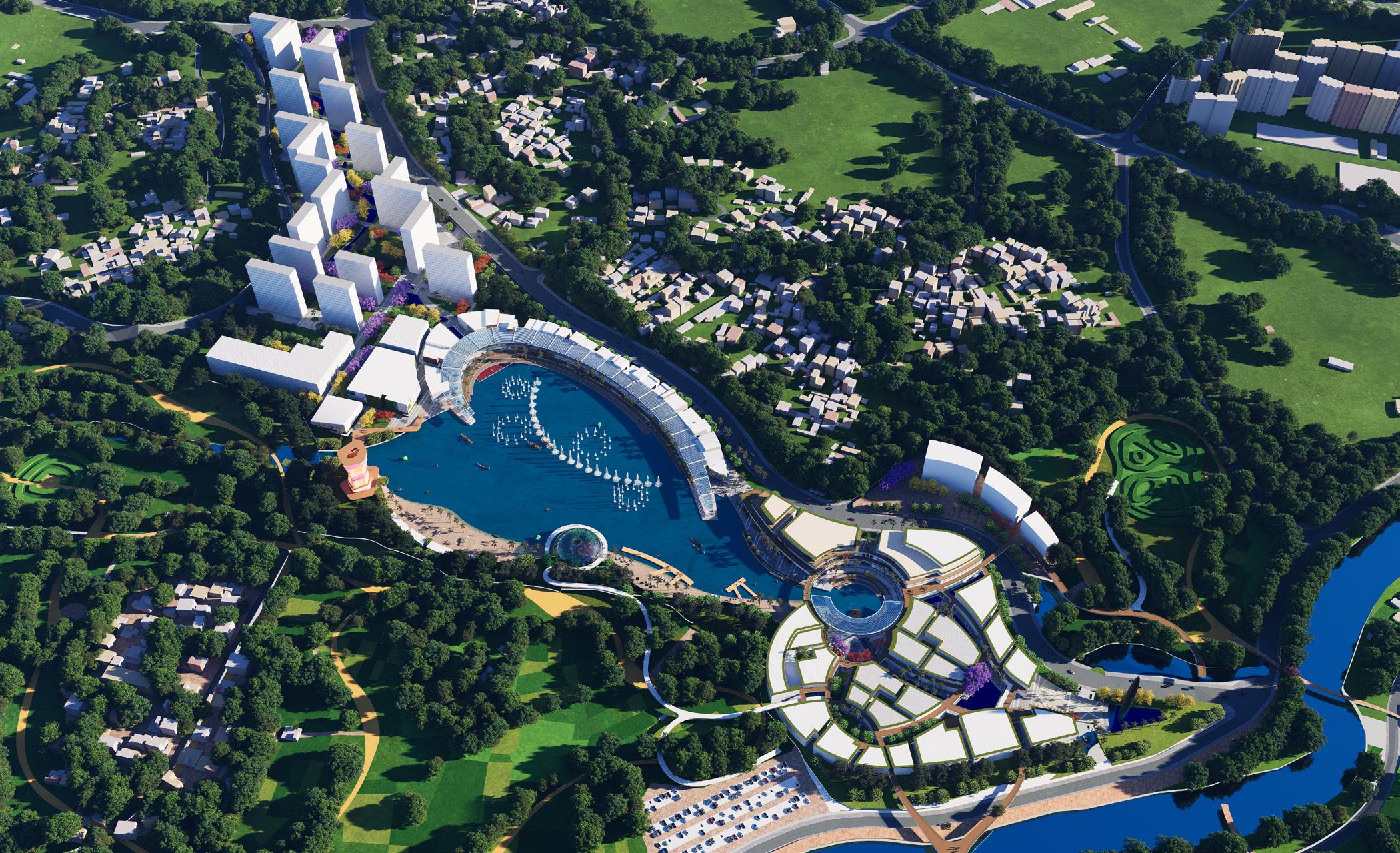 view looking at the planned retail village for Phase II. Offering a panoramic stage for cultural and commercial events.