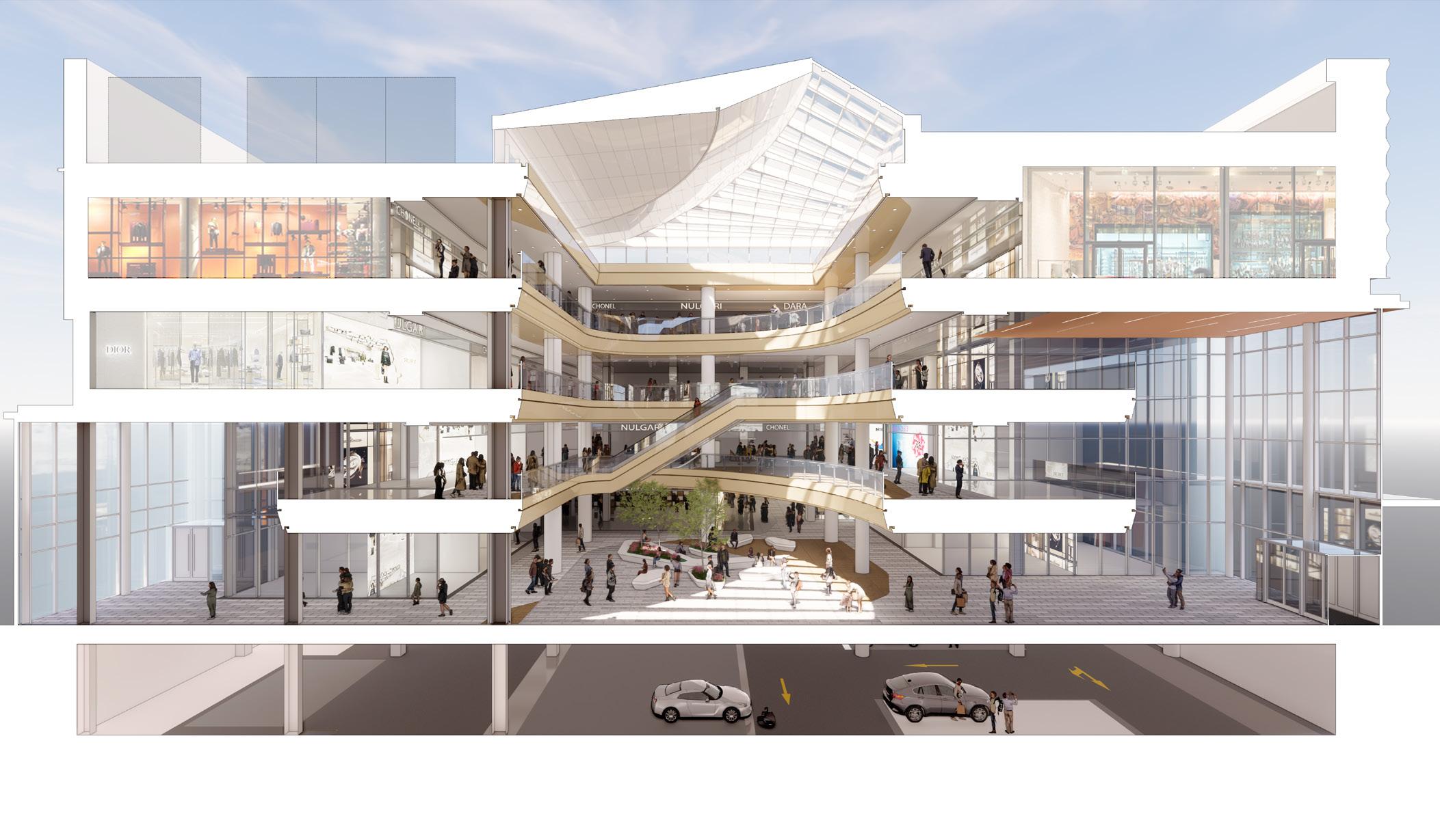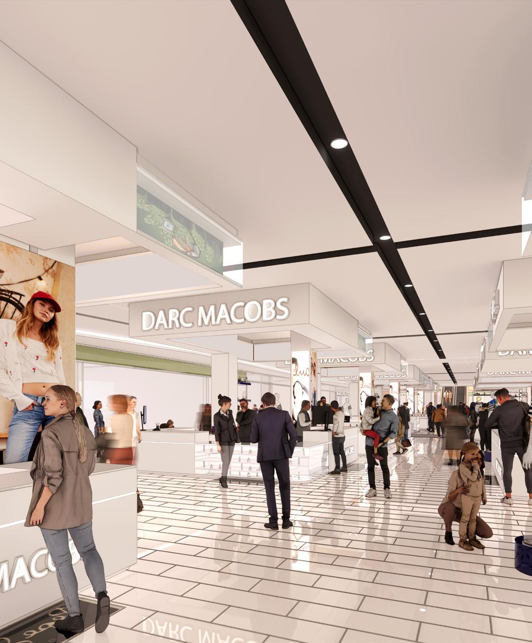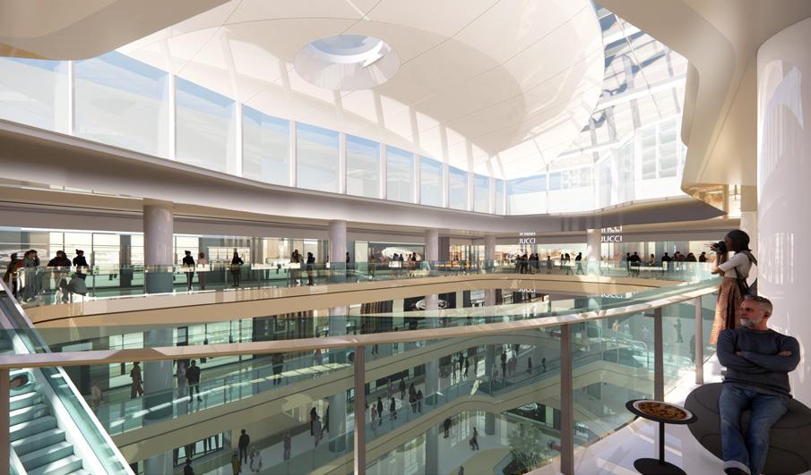 My work centered on reorganizing public circulation, anchor retail nodes, and key gathering spaces to create a more intuitive and fluid spatial experience. This included strengthening the connections between multiple levels, improving wayfinding through clear visual corridors, and reinforcing anchor points that guided visitors through the mall. I placed particular emphasis on creating interior environments that support the broader community-focused vision of the project. Integrating daylight and greenery into circulation areas softened the interior character and enhanced the spatial quality, while careful alignment of interior materials and finishes with the façade strategy established a coherent architectural language throughout. The result was a unified design narrative that balanced commercial performance with an elevated public realm experience.