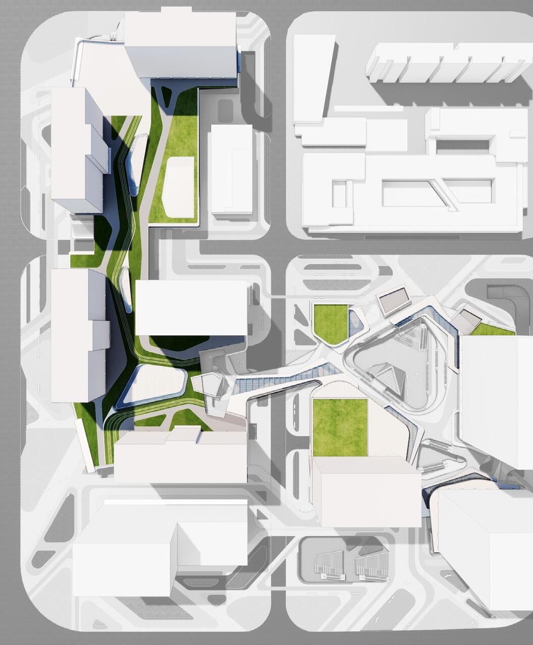 Throughout the project’s design trajectory, I supported the development of a cohesive master plan by translating evolving regulatory standards into actionable strategies. I played a central role in evaluating land-use efficiency, environmental setbacks, and mobility requirements, ensuring compliance as provincial and national policies shifted. My role on the project required continuous coordination between zoning constraints, ecological buffers, and district-level circulation demands. I conducted design feasibility studies, developed architectural alternatives, and tested massing scenarios to understand the implications of density, scale, and phasing across a complex waterfront site with dynamic legislative conditions.