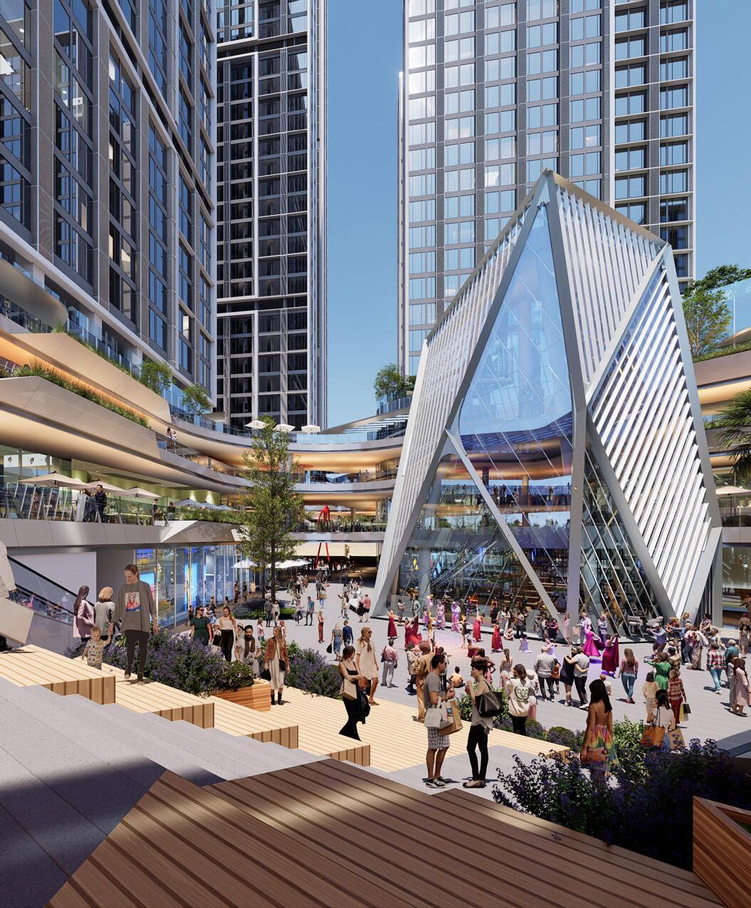 Positioned within Shenzhen’s rapidly developing Longgang district, KK Longgang is a large-scale mixed-use development that integrates retail, office, and public amenities within a cohesive urban framework. Conceived as a vibrant civic anchor, the project seeks to redefine the relationship between commercial density and public life through an interconnected network of plazas, courtyards, and interior atriums. The architectural language emphasizes permeability, daylight, and spatial rhythm, offering an environment that supports both highintensity urban activity and moments of social pause.