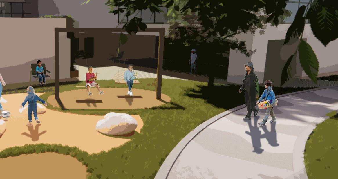 The form of the building was shaped through a dynamic push-and-pull strategy, creating an engaging pedestrian experience with undulating pathways. This design fosters pockets of community interaction within retail areas, a community center, playgrounds, and a garden, enhancing connectivity and vibrancy in the neighborhood.