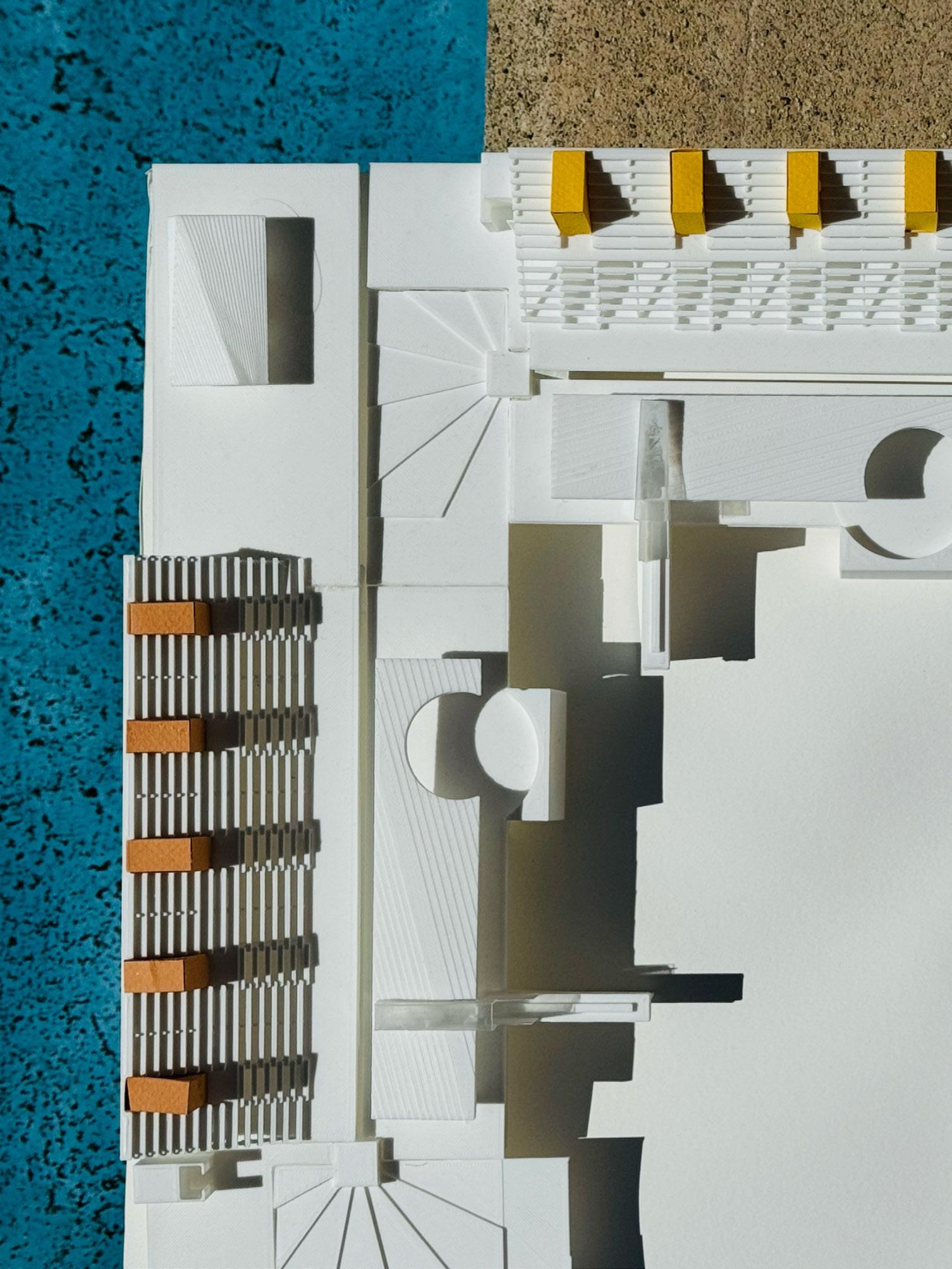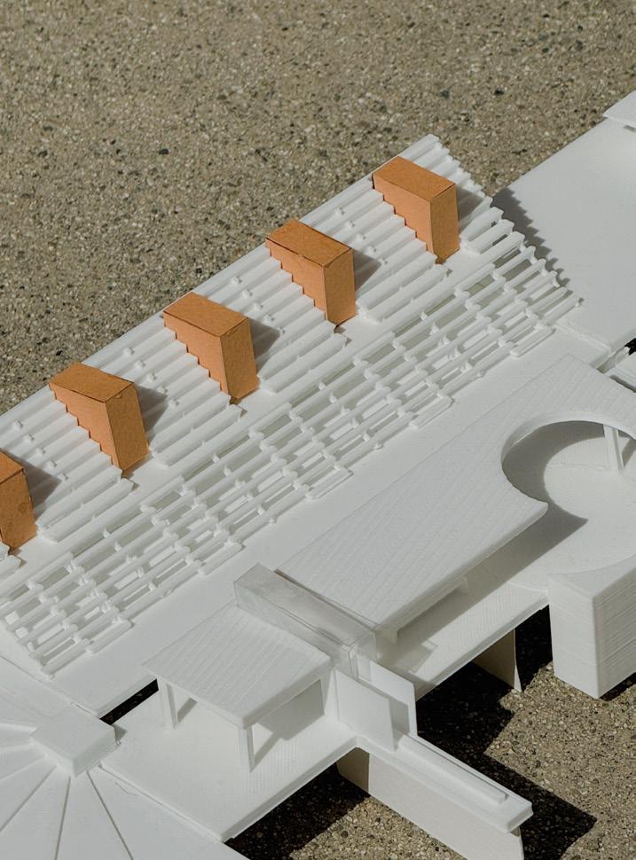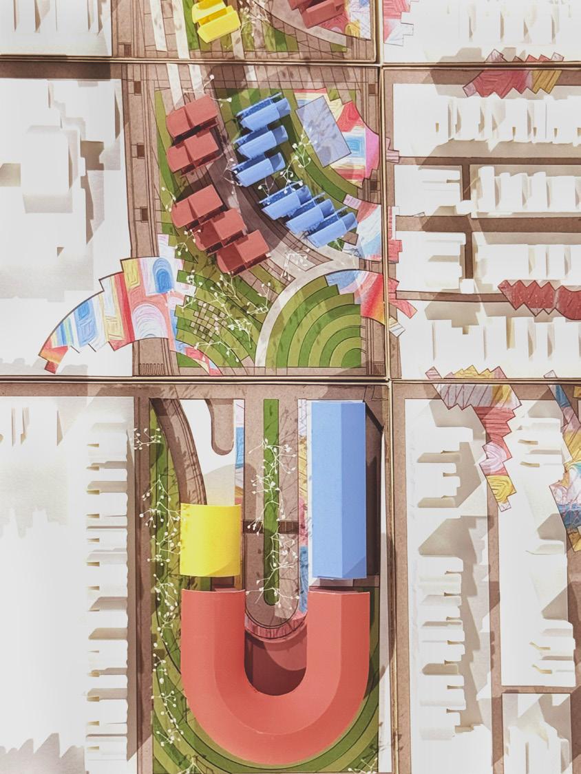 Study Models demonstrating the lofted housing development freeing the ground for public programs.