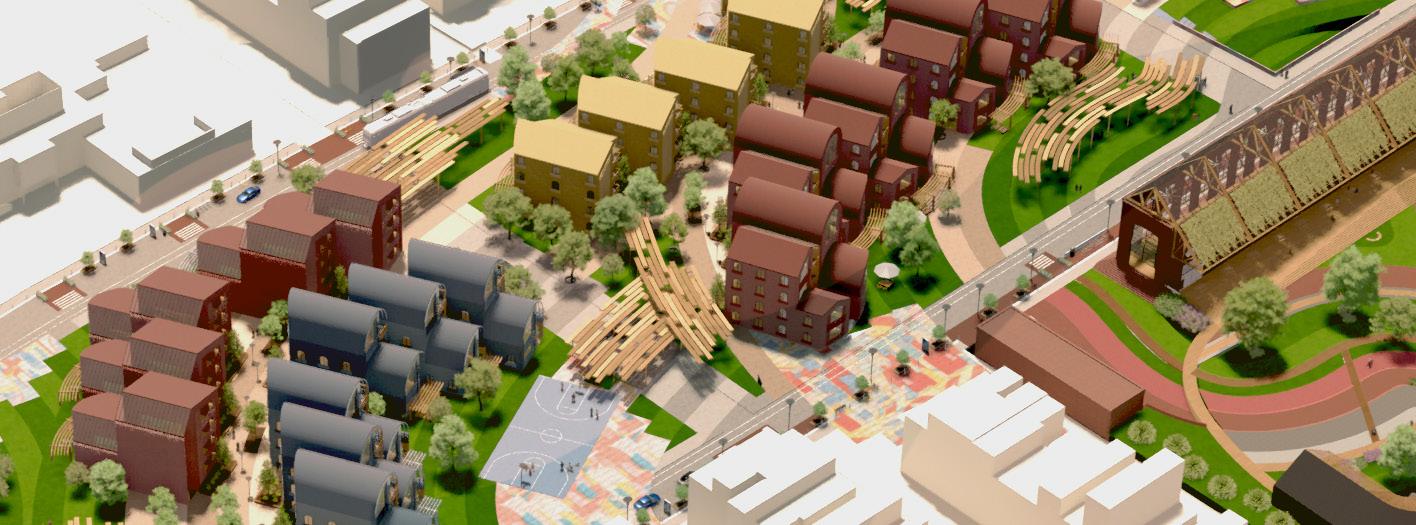 Student chapters designed concepts for the Williams & Russell Project, a restorative justice initiative honoring Portland’s Black community on land condemned in the 1970s. The development aimed to build wealth, support Legacy Health’s mission, and integrate mixed-income housing, commercial spaces, and community areas.