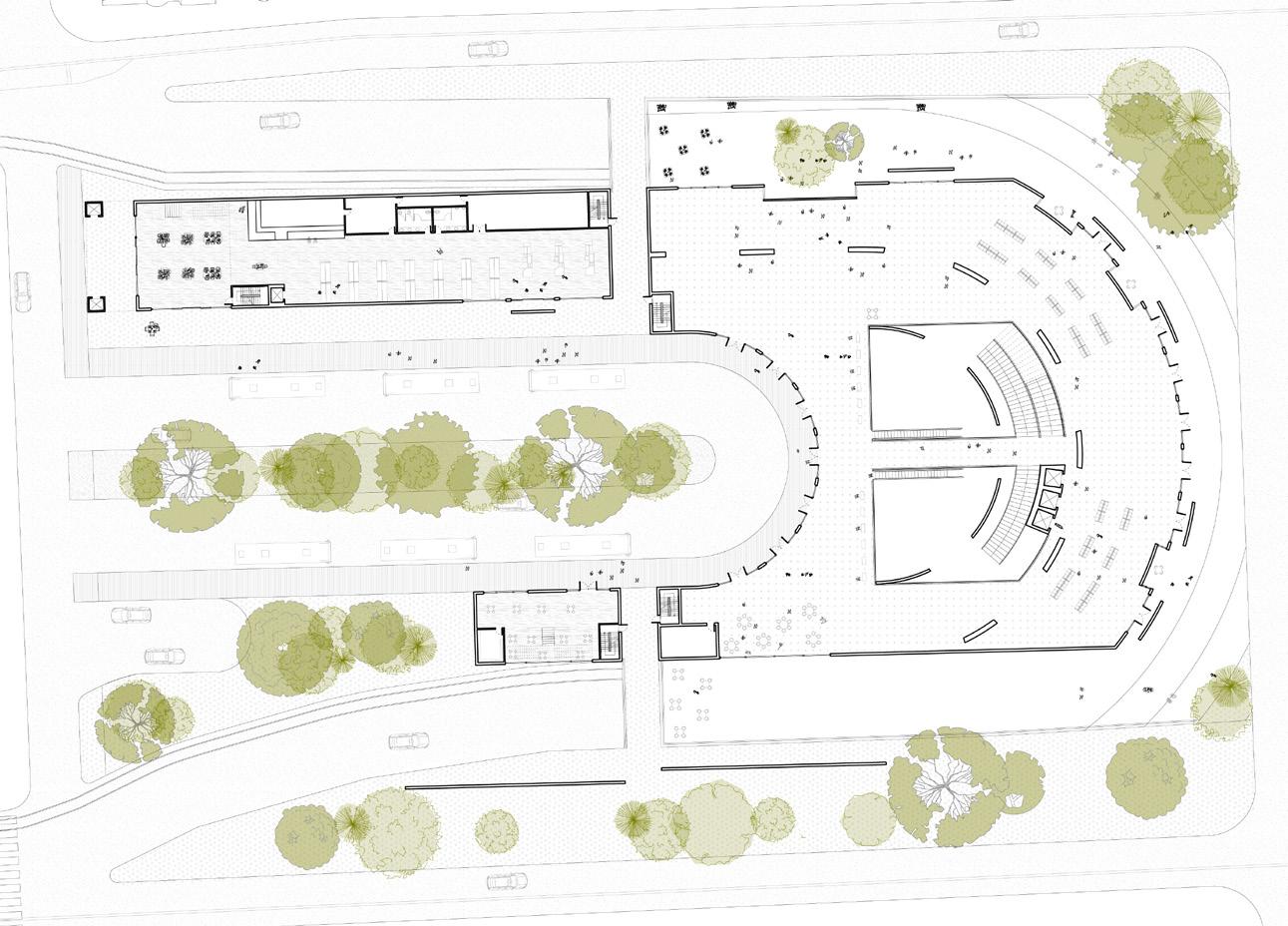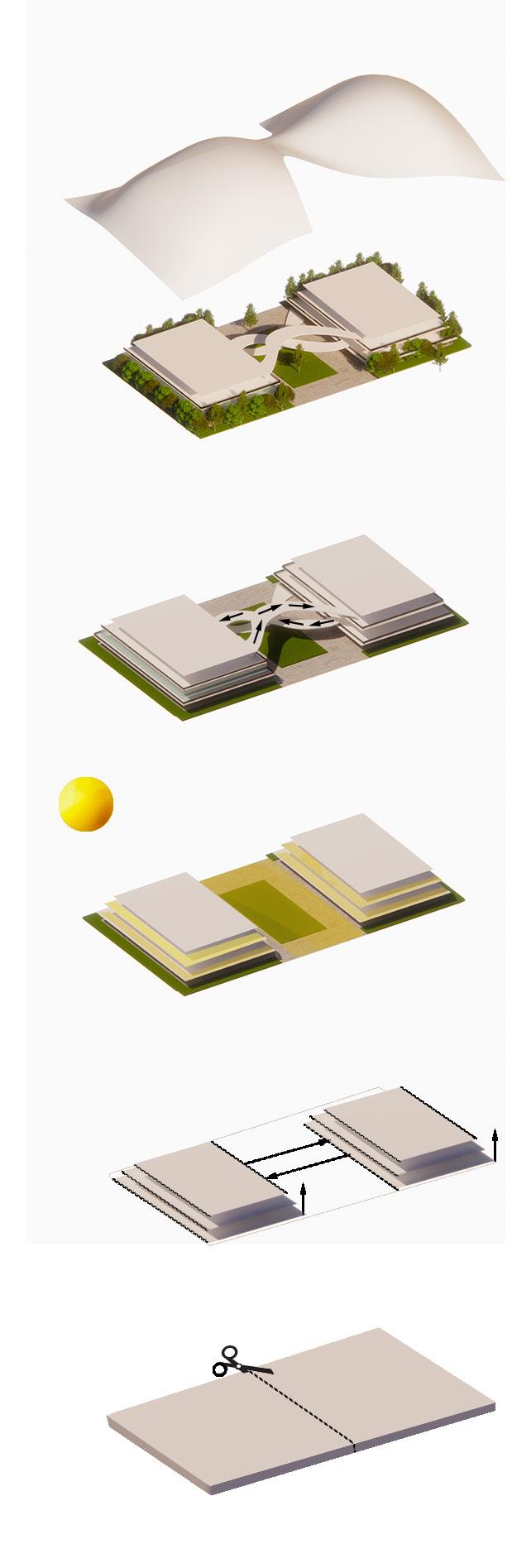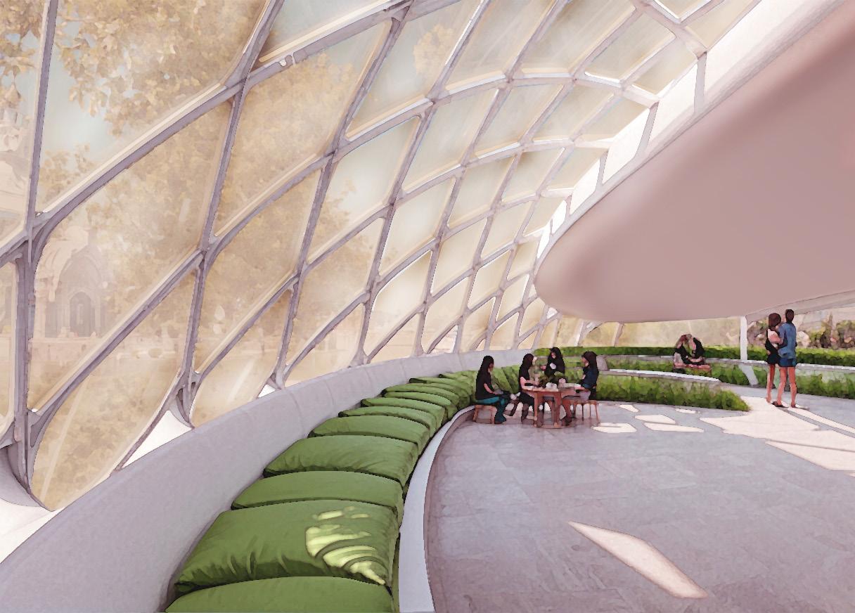 Inspired by this idea, the curved roof canopy is designed to maximize natural light and create dynamic visual connections inside and outside the galleries. Framed openings filter sunlight through curated apertures, casting ever-changing patterns on gallery walls while offering glimpses of the surrounding environment. This interplay of light, space, and perspective fosters a quiet dialogue between art, architecture, and the world beyond.