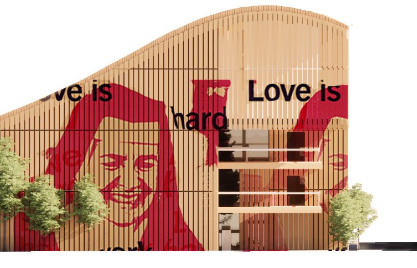 Corita Kent was an artist, educator, and activist who used bold colors, typography, and everyday imagery to challenge injustice and inspire change. A Catholic nun turned pioneering printmaker, she merged pop art with social activism, transforming graphic design into a powerful tool.Reflecting her dynamic screen prints, the foundation layers color, materials, and form to create an immersive space. It houses galleries, an art education center, studios, offices, an auditorium, outdoor gathering spaces, and a café, fostering creativity, dialogue, and community connection—just as Kent did through her art.