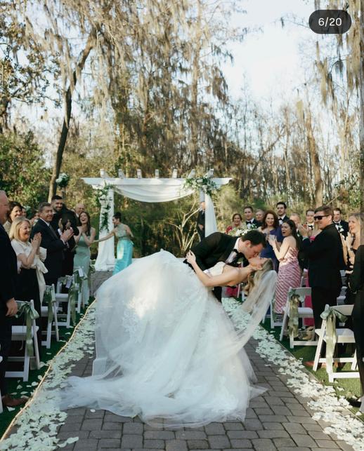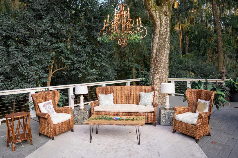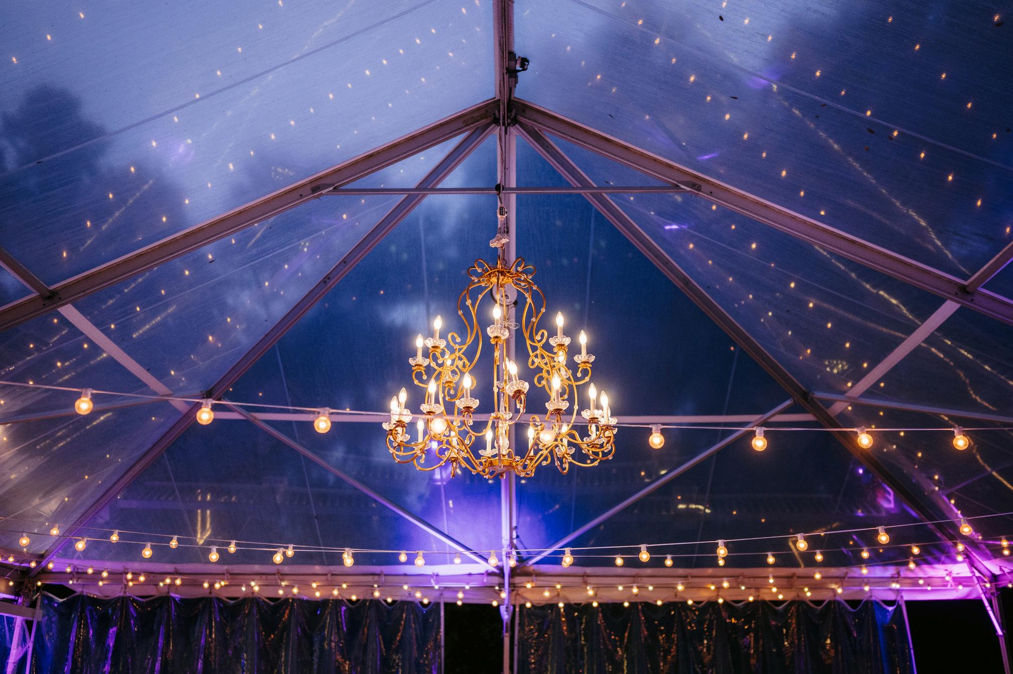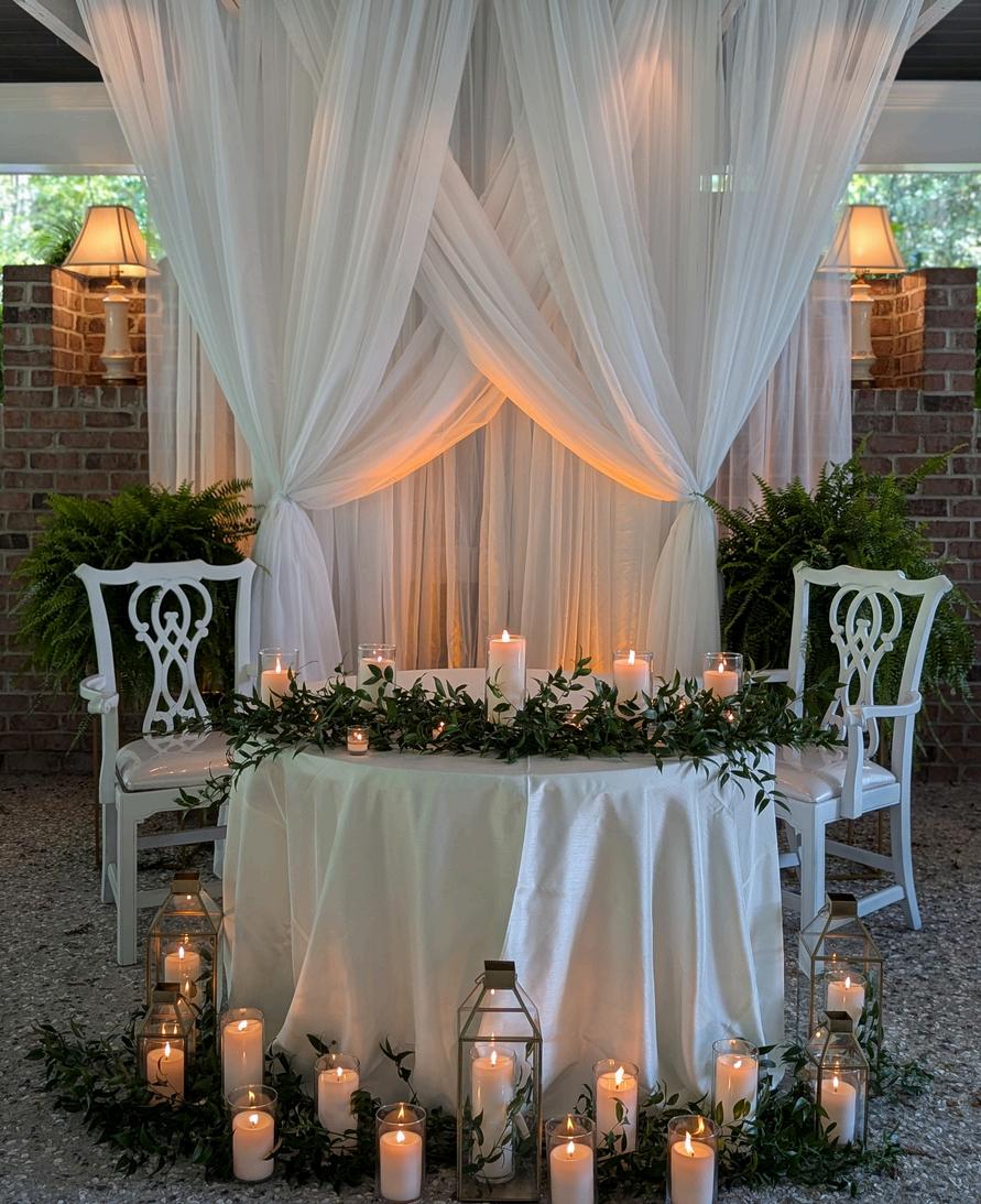 Arbor draping, chandelier, & seasonal greenery tiebacks