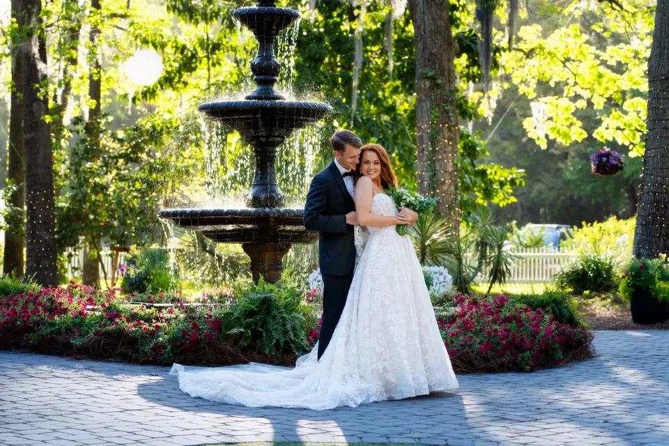 Beautifully placed draping in the garden arbor or the lakeside arbor for ceremony