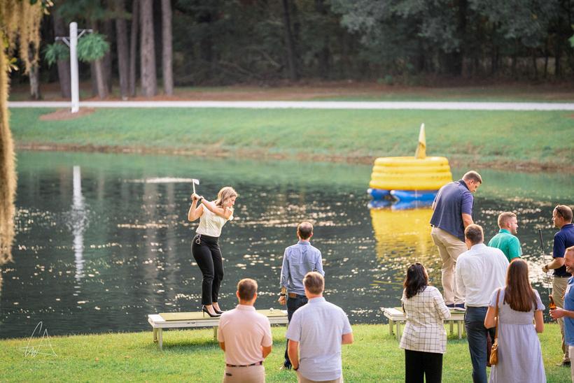 Add a lakeside driving range with biodegradable golf balls and floating golf target to your event experience at The Mackey House