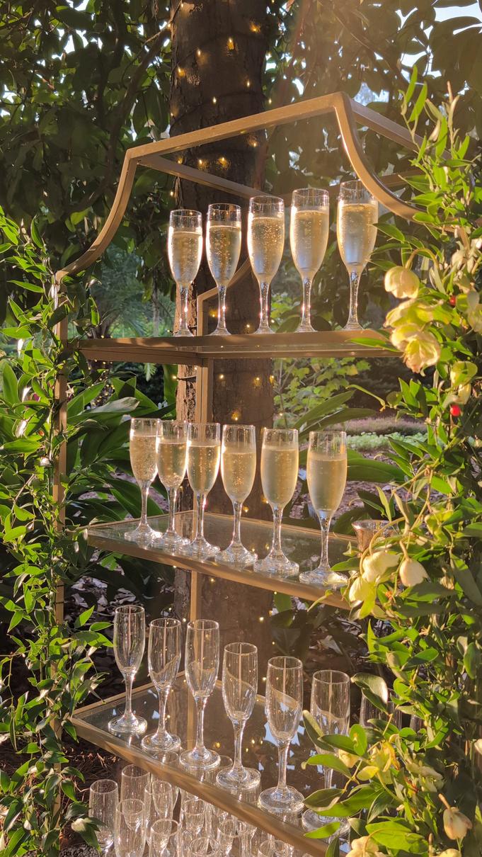Two gold shelves to use in Main House for pictures, favors, or desserts