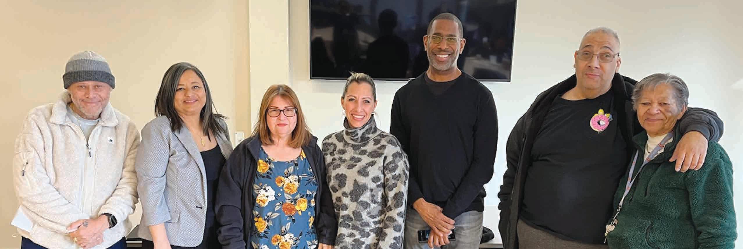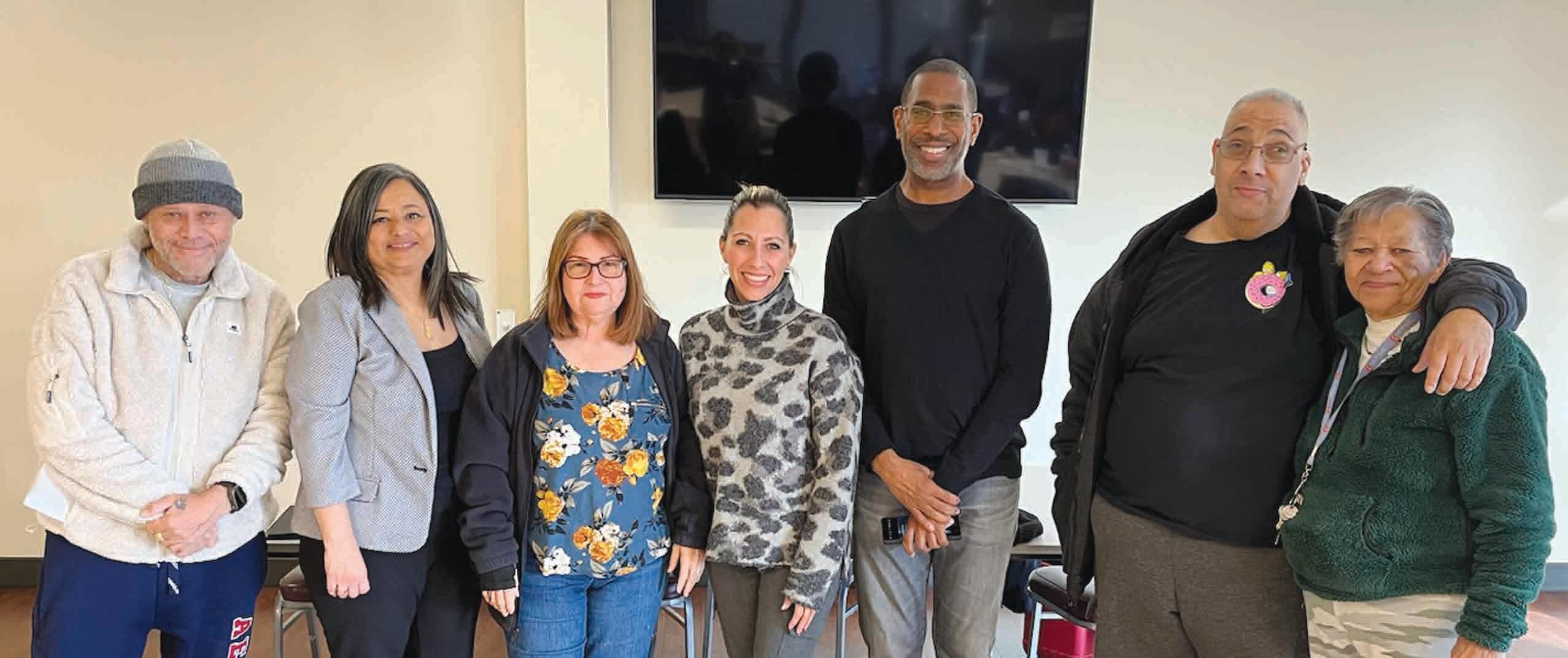 Residentes de Gross Towers asistieron al programa de alfabetización financiera presentado por Steve Redmond, director ejecutivo de Valley Wealth Alliance (quinto de izquierda a derecha). Steve discutió presupuestación y exploró propiedad de vivienda en la presentación de diciembre. continúa en la página 16