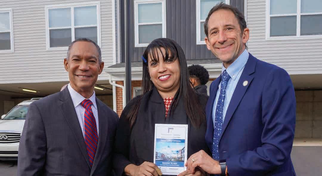 Helping celebrate the 50 new, quality homes of Bridgeside Estates were (left to right) Julio A. Guridy, Executive Director, Allentown Housing Authority; Maria Martinez, Property Manager, Bridgeside Estates; Matthew Tuerk, Mayor, City of Allentown.