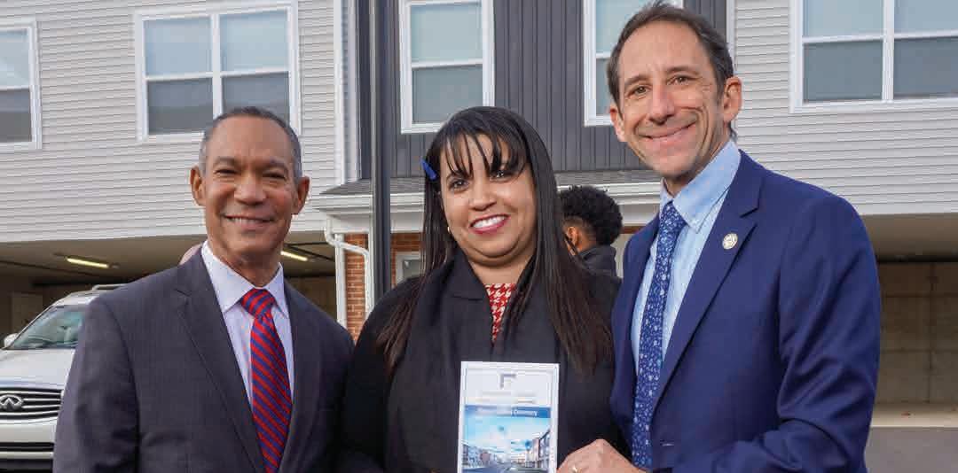 Ayudando a celebrar los 50 nuevos hogares de calidad de Bridgeview Estates estaban (izquierda a derecha) Julio A.Guridy, director ejecutivo, Autoridad de Vivienda de Allentown; Maria Martinez, gerente de la propiedad de Bridgeside Estates y Matthew Twerk, alcalde, ciudad de Allentown.
