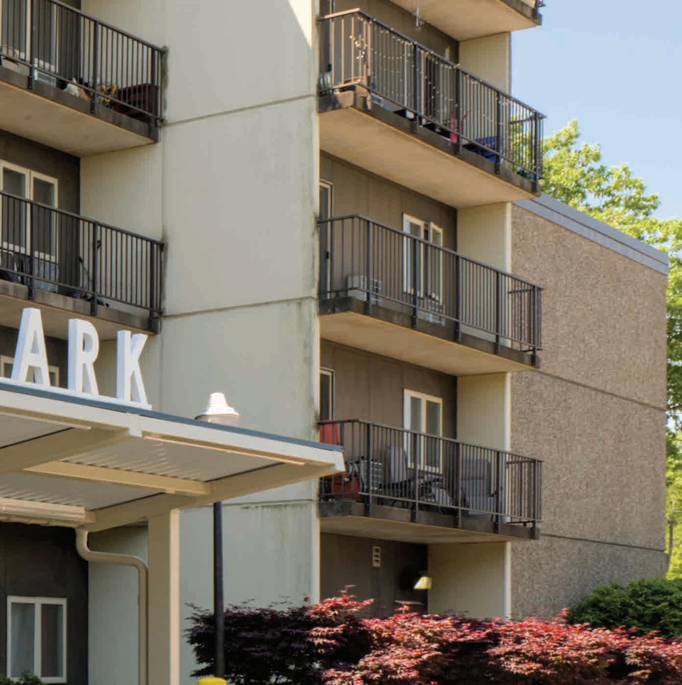 • The exterior rehabilitation will include replacing the wall cladding system, windows and patio doors, and rehabilitating exterior concrete porches at residents’ units. A landscaping upgrade is part of the project. Work begins this spring.