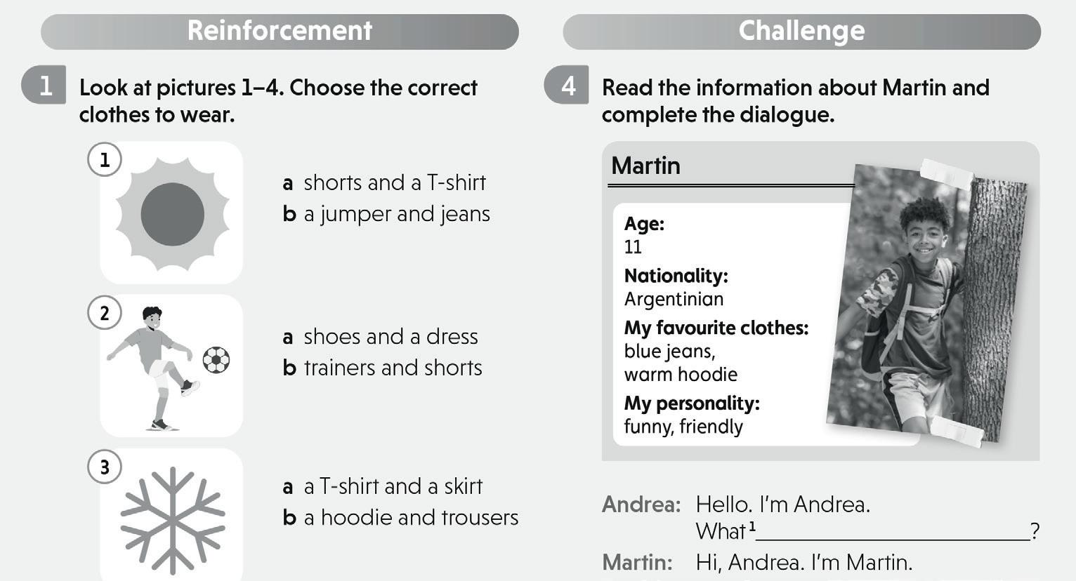 Mixed-ability reinforcement and challenge activities are available in both the Student Book and the Workbook to help teachers find the right level of challenge for all students.