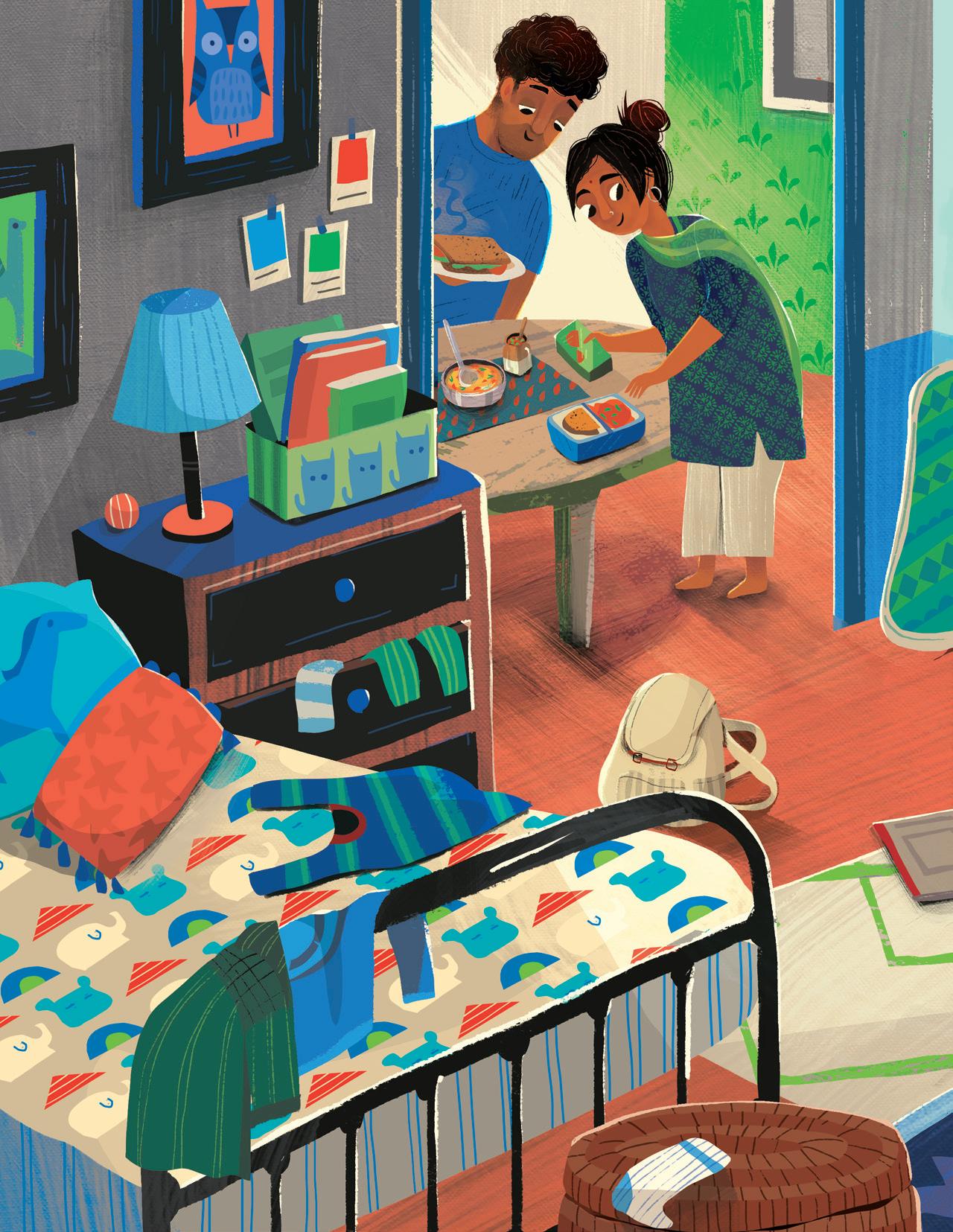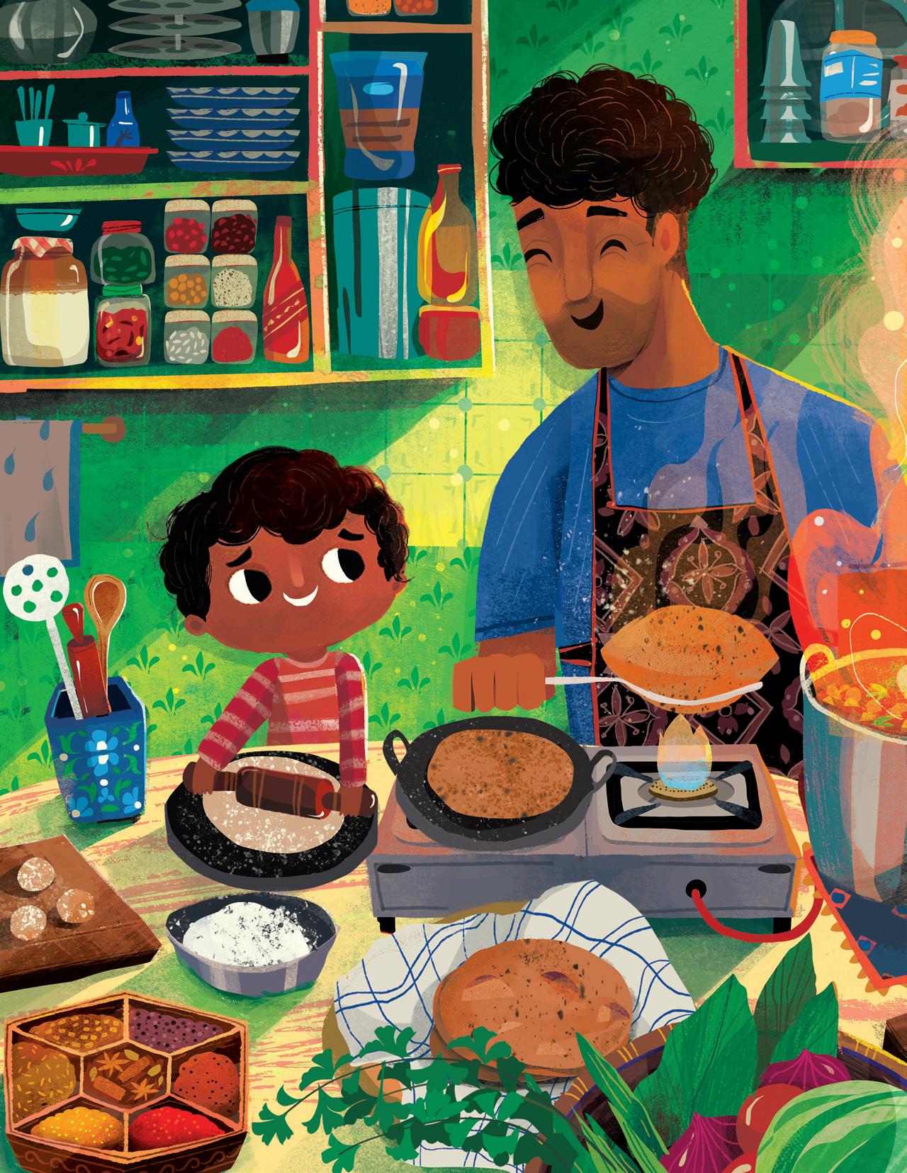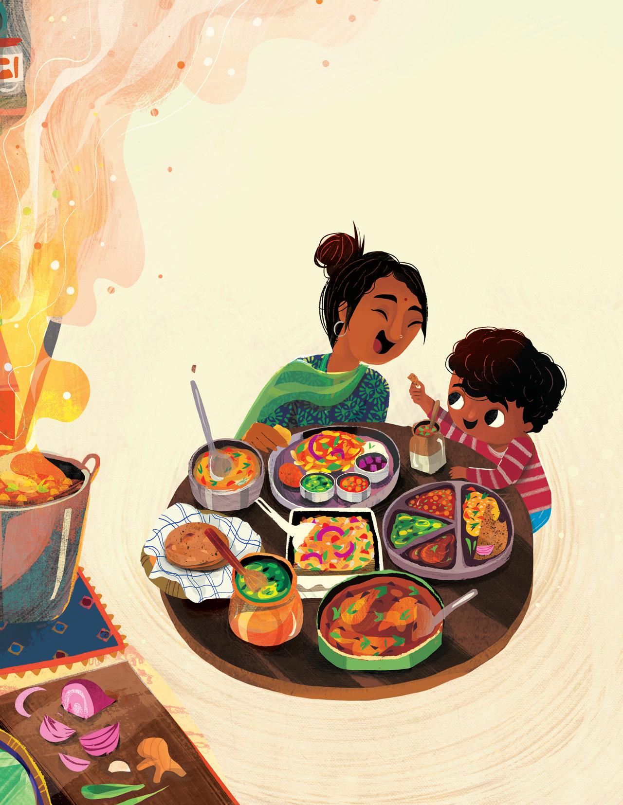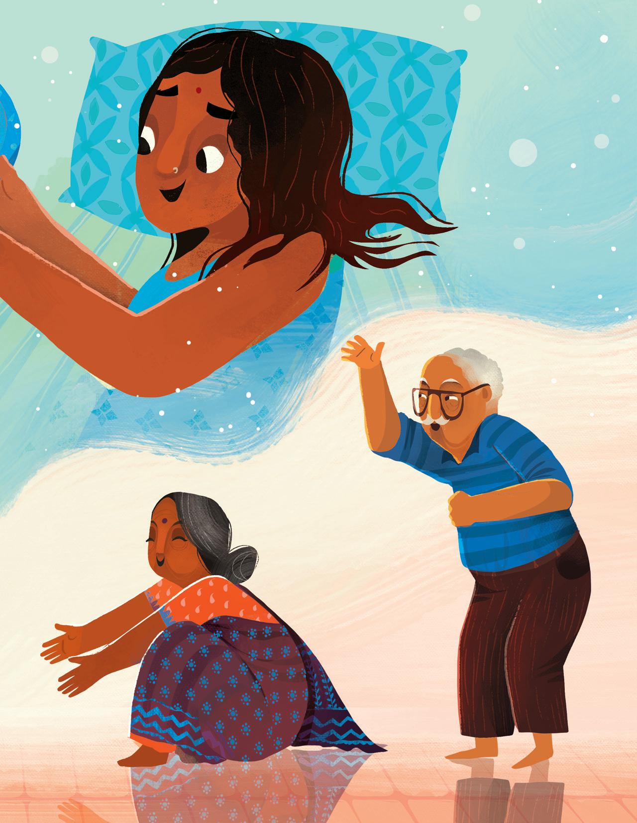 I illustrated this book while facing the challenges of the pandemic, while raising my baby, and while visiting my family in India for a few months after eons of being apart. This project was my breath of fresh air, my window of escape. Painting it was often the only activity that helped me find my inner peace. I’m forever grateful to have had a chance to be a part of this project.