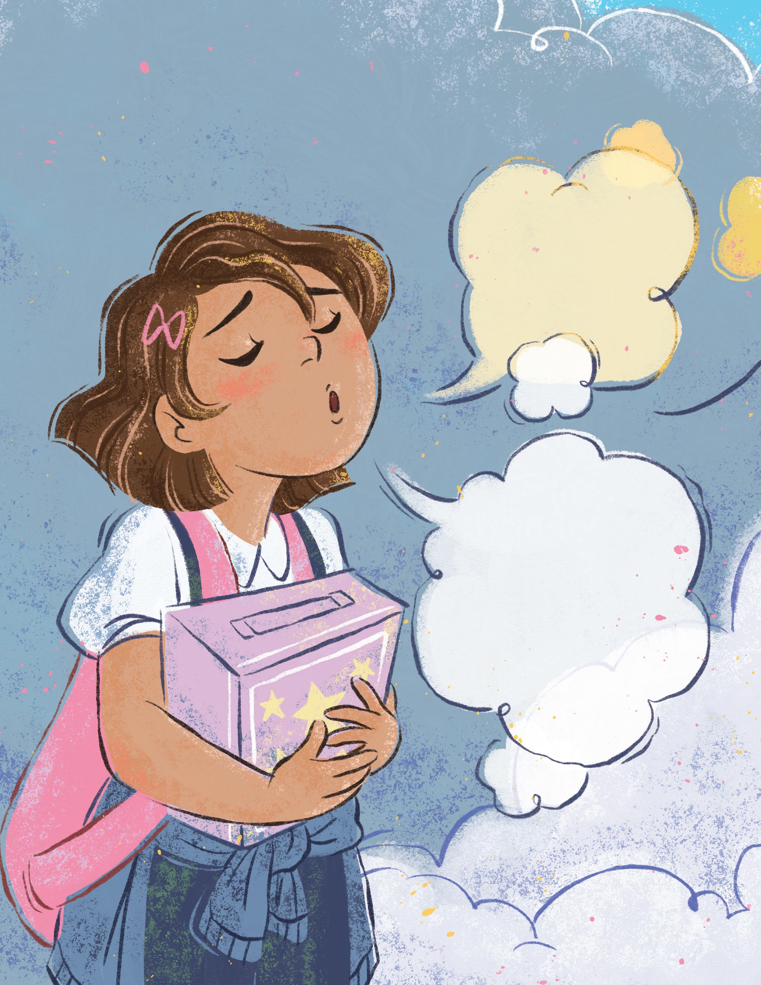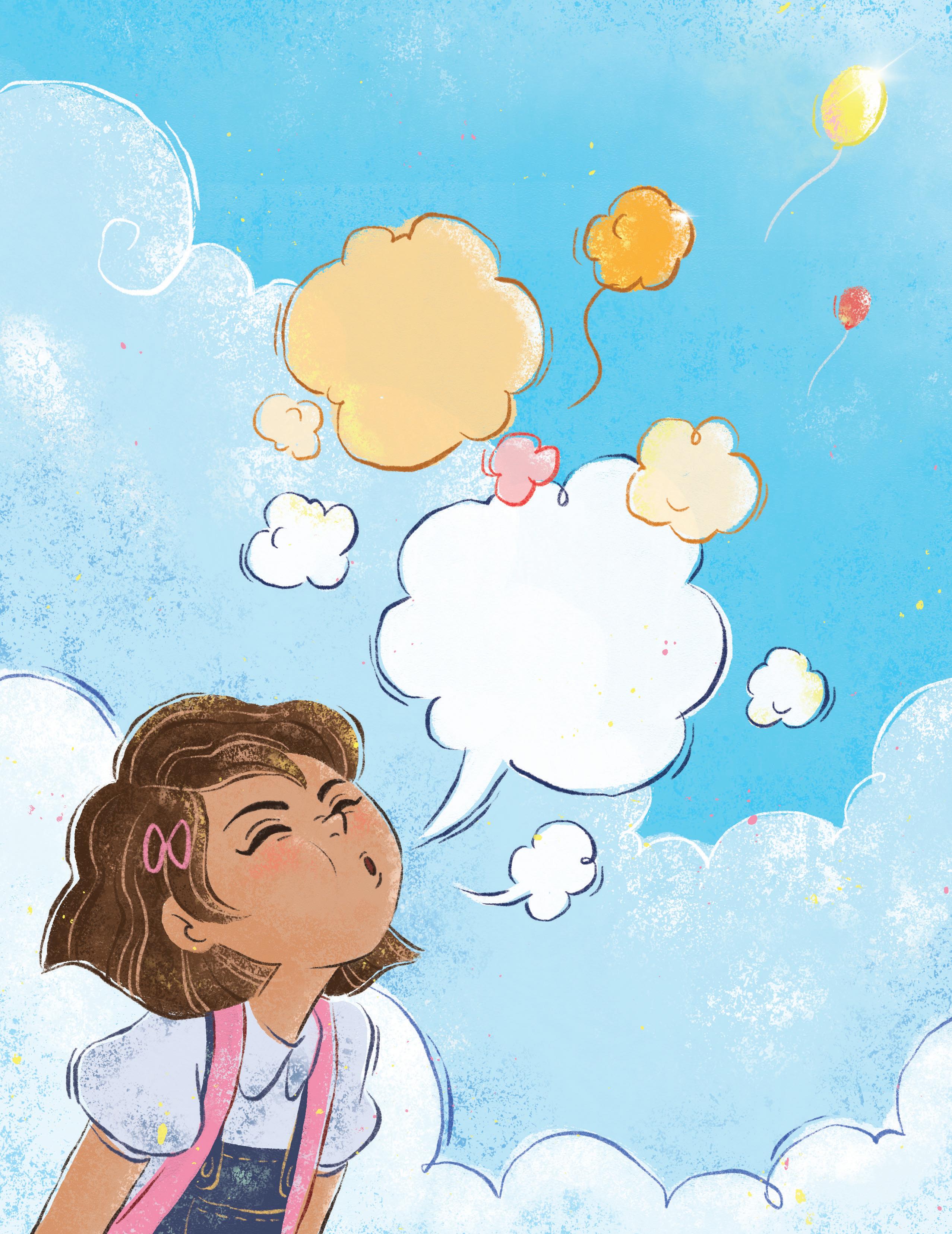 On the first day of school, Isla’s mind plays the what if game. Scary thoughts come, the world goes dark, and everything feels stormy. With Mami at her side, Isla takes a deep breath and blows her worries away in a big balloon. But as school gets closer, Isla’s worries come back like a tornado. Mami encourages her to imagine something happy, and Isla remembers there’s nothing she can’t handle.