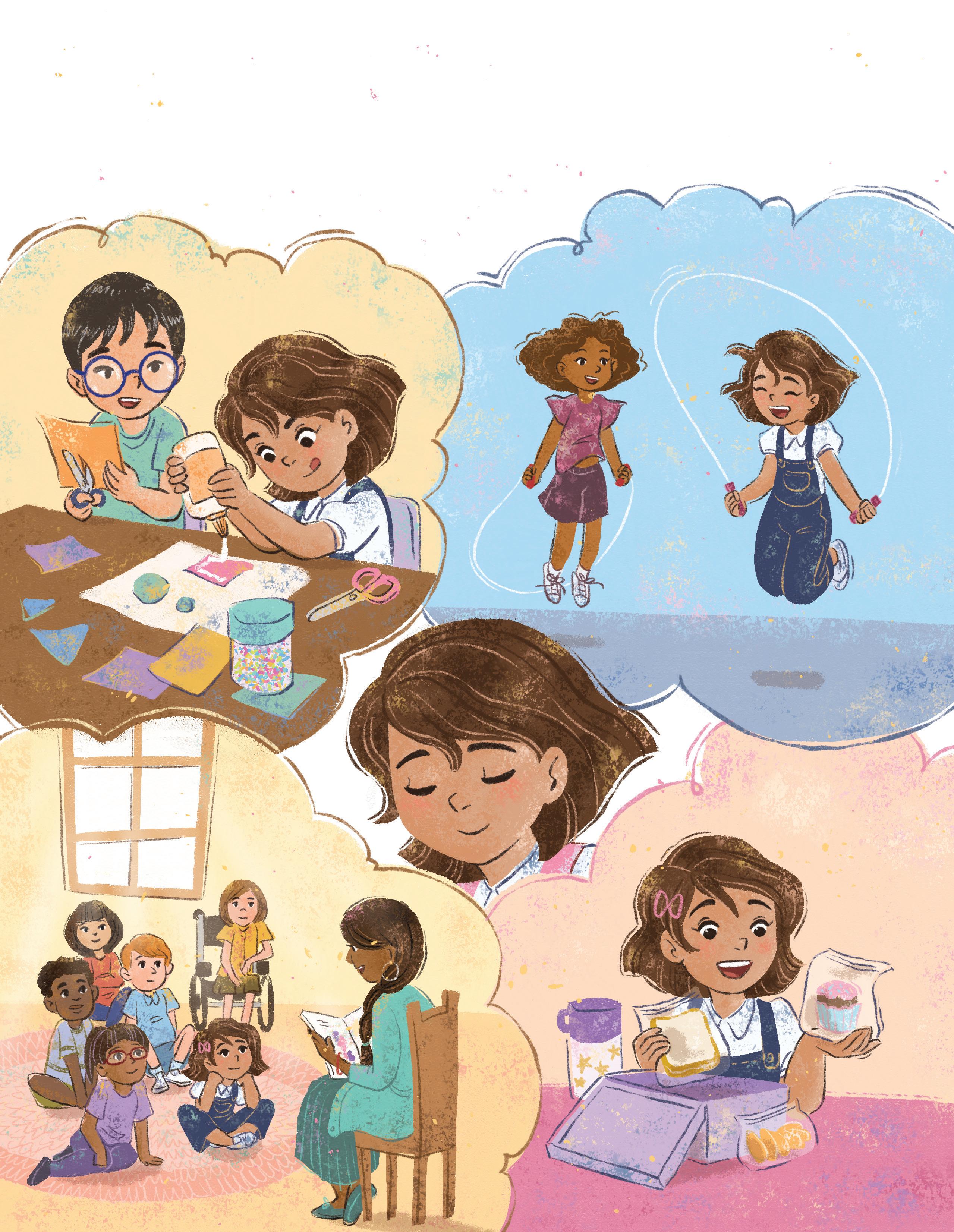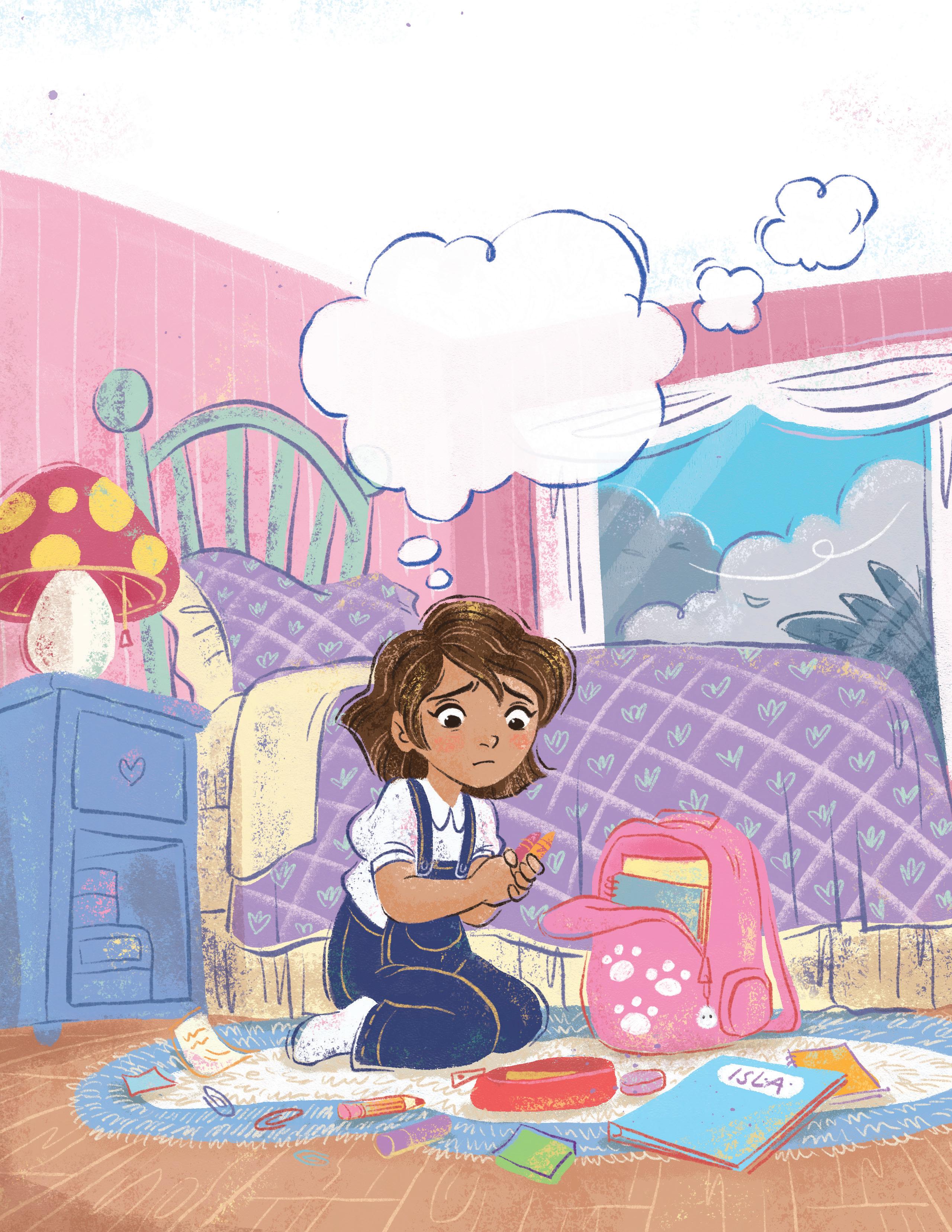 Isla imagined arts and crafts, and recess on the playground. She thought of the stories her teacher would read, and the treats she might find at lunchtime.