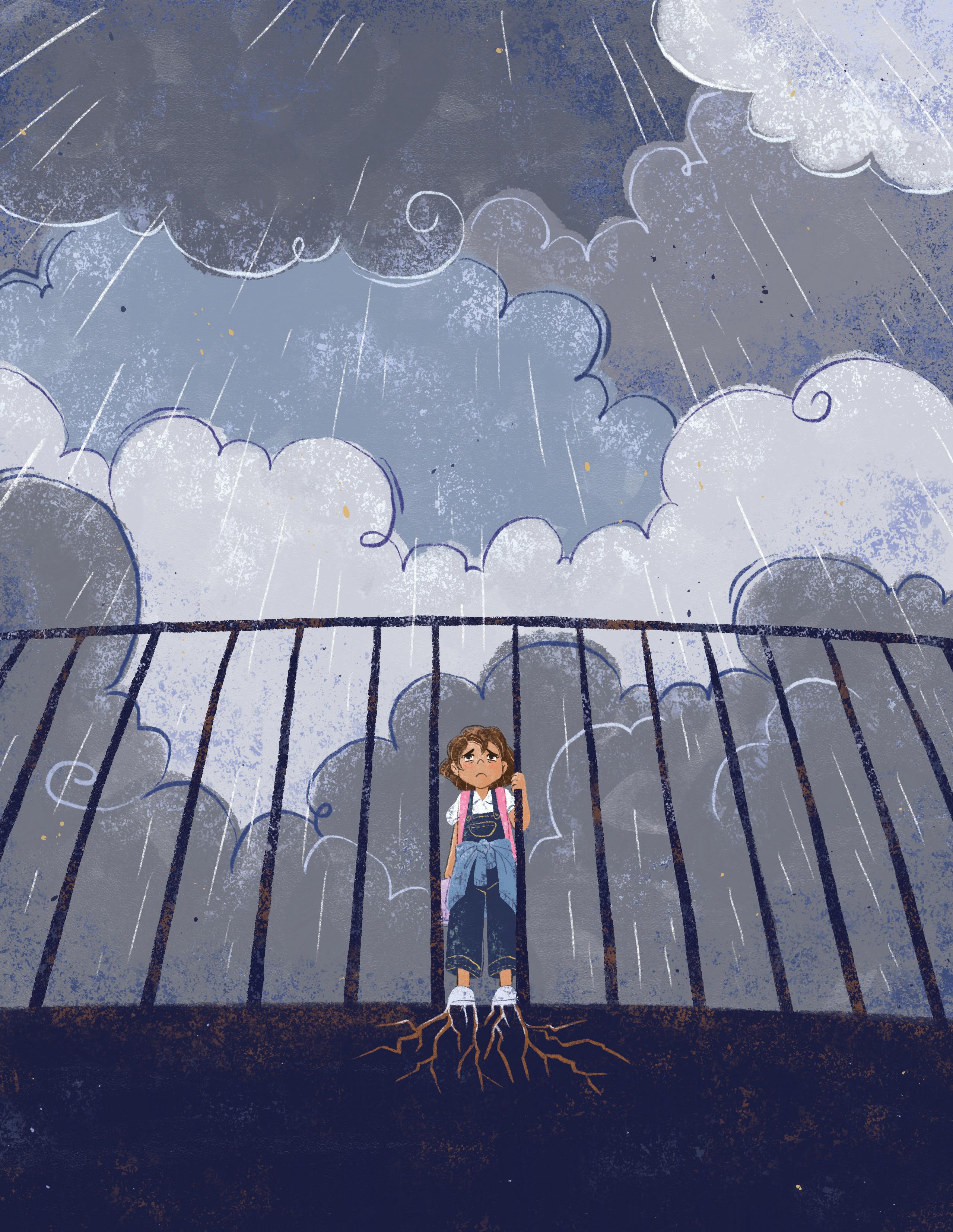 Isla stood by the door in her first-day outfit and brand-new backpack. But her feet would not move. She felt like she was stuck in a pool of quicksand.