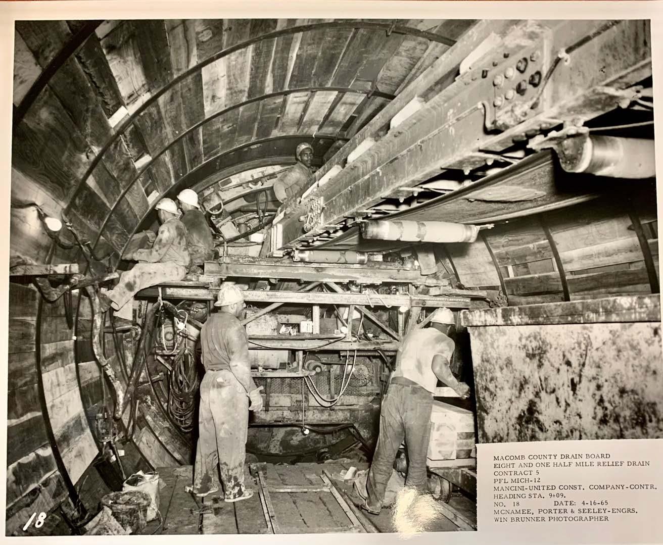 Rehabilitation work is underway at eight drop shafts and connecting sewers. The first one, on 21 Mile Road at Towne Center Boulevard in Chesterfield Township, was completed in February. This photo shows how badly the concrete pipe has deteriorated, exposing the rebar.