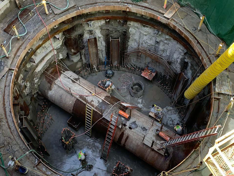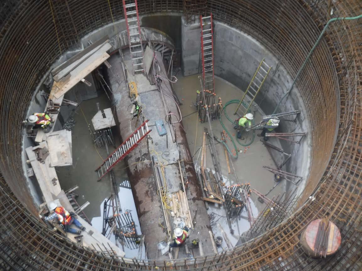 Inside“Segment5”oftheMacomb InterceptorDrainalong15MileRoadwestof SchoenherrtoHayesRoad,crewsare removingsedimenttoprepareforthe installationofimperviouslininginthewidest stretchofthepipenearSchoenherrRoadin SterlingHeights,andpouringconcretewalls inthe70-foot-deepshaftforapermanent pumpstation.Wheretheinterceptornarrows to8feetindiameternearHayesRoad,crews havebeguntosprayapolymerontheinside ofthepipetoprotectitfromfurther degradation.