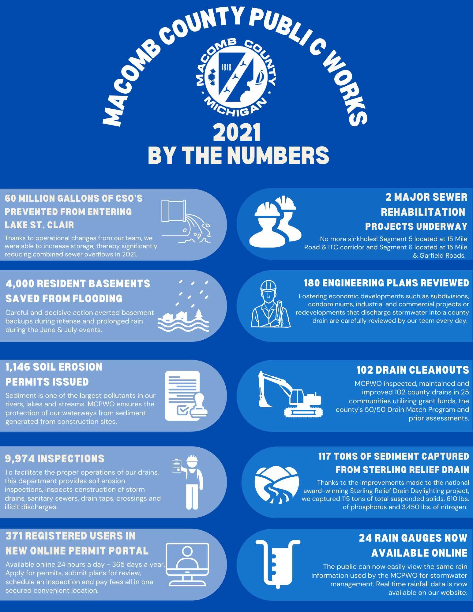 We’re committed to transparency in everything we do, and I encourage you to read this report. You can also visit us at macombgov.org and click on the Macomb County Public Works page to learn more about our activities and services. Check us out on social media. You also can contact us by email at public.works@macombgov.org or by phone at (586) 469-6101.
