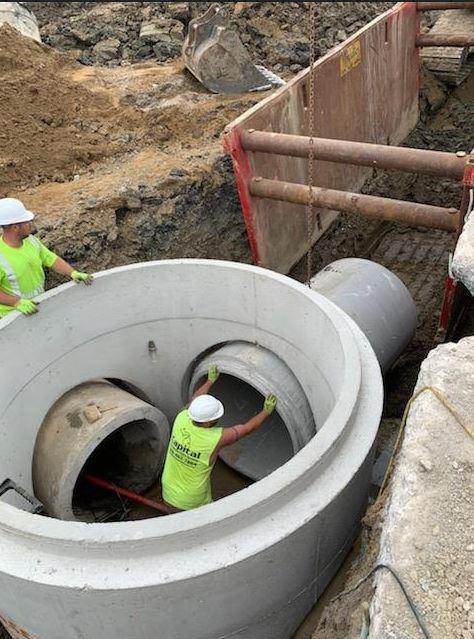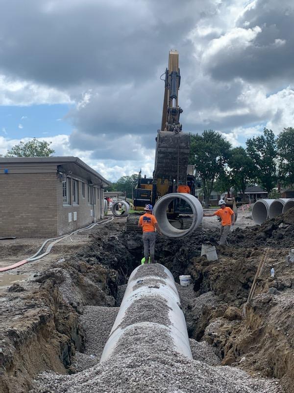 AttheJunctionDraininSt.ClairShores,we recentlyrelocatedandinstalled350feetofnew reinforcedconcretepipetoallowforthe expansionofJeffersonMiddleSchool.Thenat GreenwoodElementarySchool,320feetof rottedmetalpipewasreplacedwith48-inchdiameterconcretepipe.