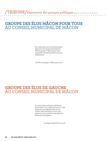 Groupe des élus DE GAUCHE au conseil municipal de Mâcon En raison des prochaines échéances électorales et en conformité avec le code électoral, nous décidons de ne pas utiliser cette rubrique et nous vous proposons de nous retrouver après les élections municipales.