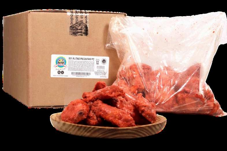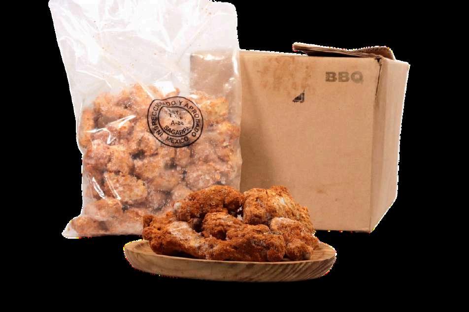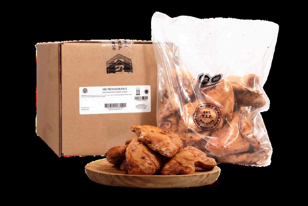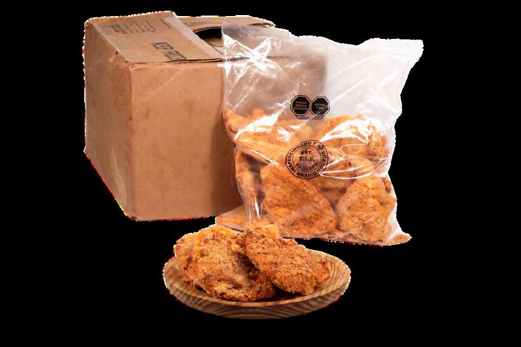 Habanero.Normalmente seccion 1 y 2. Ligeramente empanizada. No picosa.Totalmente cocida. -EMPAQUE: .600grs -PESO POR PIEZA: Variable.